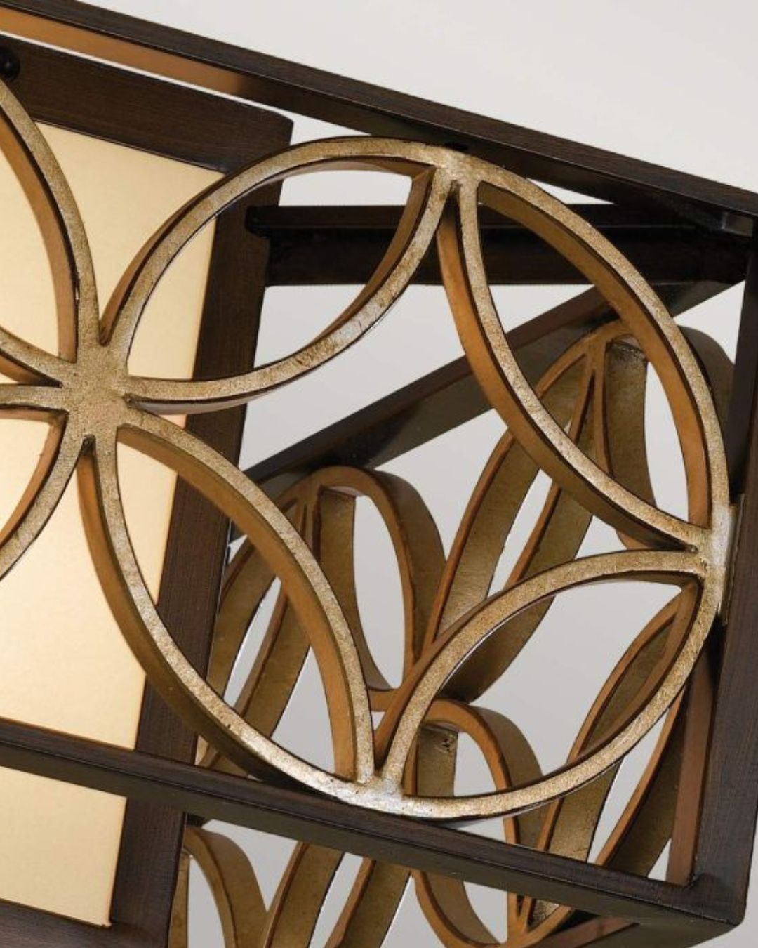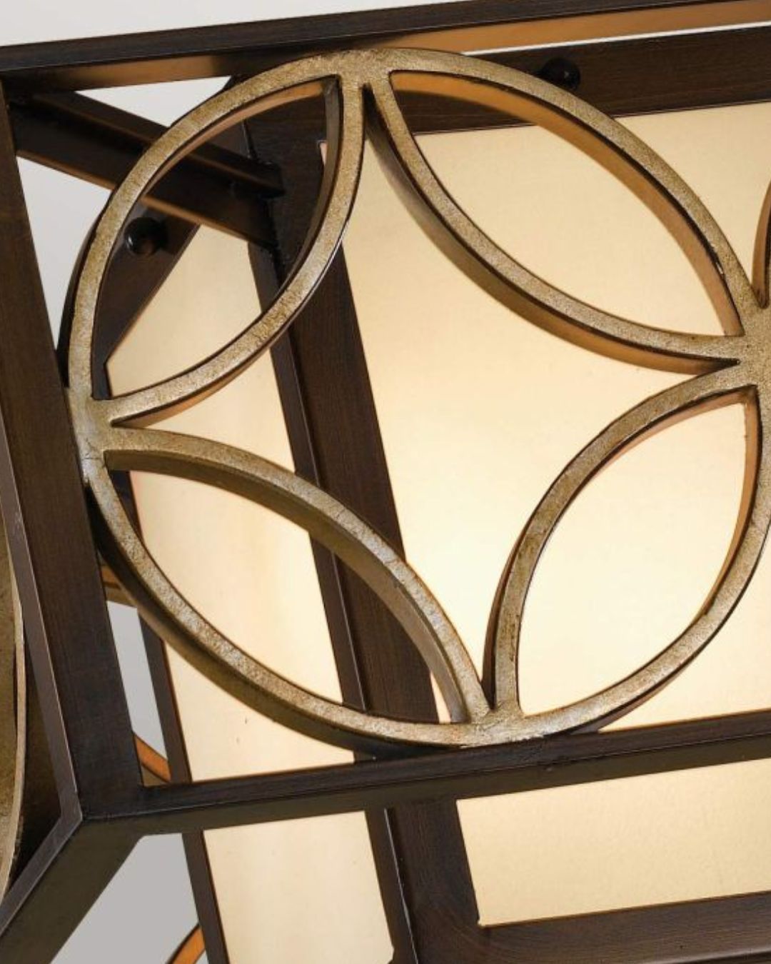 Handmade from iron and finished in a heritage bronze, this is a great choice to add a decorative touch to spaces with low ceilings. The interior shade is made from a bronze organza that acts to diffuse the light to produce a warm and welcoming ambience.