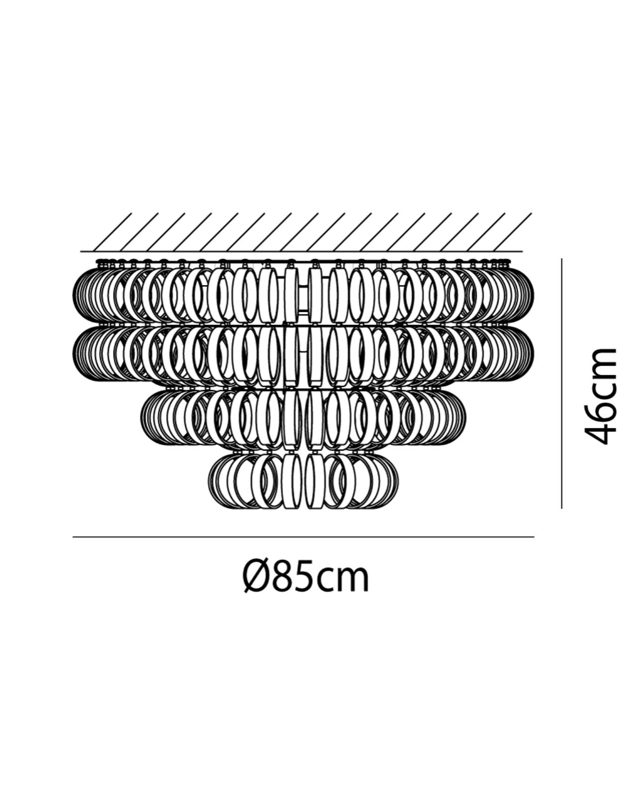 Make a contemporary statement with this hand-blown glass ceiling light composed of a complex and innovative system of interlocking glass rings. Casting beautiful and complex patterns onto nearby surfaces, this modern-day ceiling light is available in two different sizes and finishes for a highly customisable piece of art. Italian designed and made.