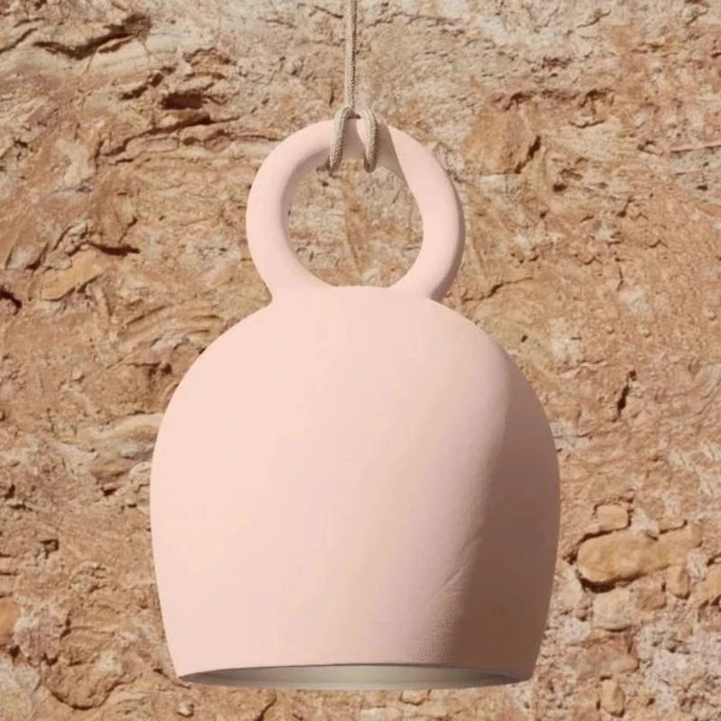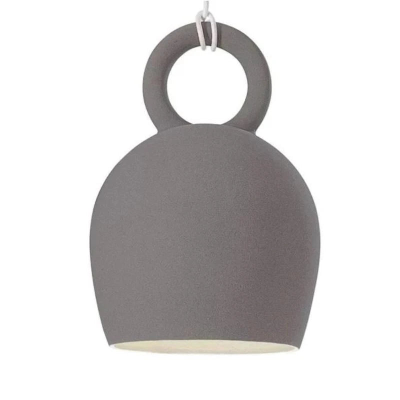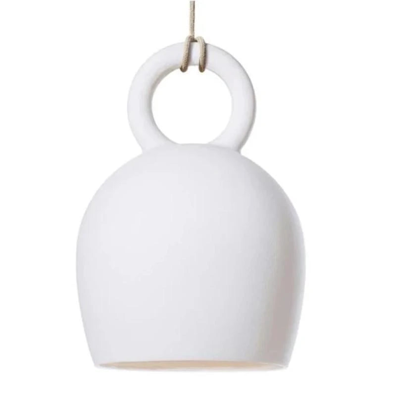 The iconic bell shape combines smooth, round surfaces with the rustic charm of a rope suspension. Perfect for hanging over your kitchen, dining, or office space.