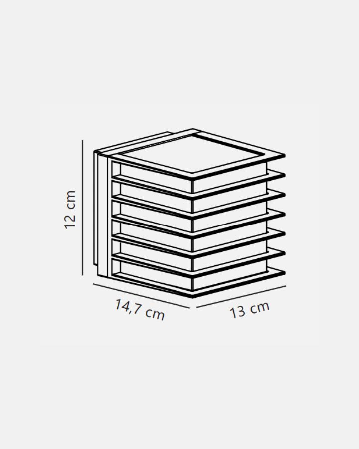 Designed in Denmark, this modern wall light features a cubed form with metal slat detailing. With an IP44 rating, it’s well-suited for installation as a pair, illuminating a front door or lining a garage wall. Its subtle yet striking design adds a contemporary touch to any exterior. For added versatility, the light is dimmable when paired with a dimmable E27 globe (not included), allowing you to create the perfect ambience.