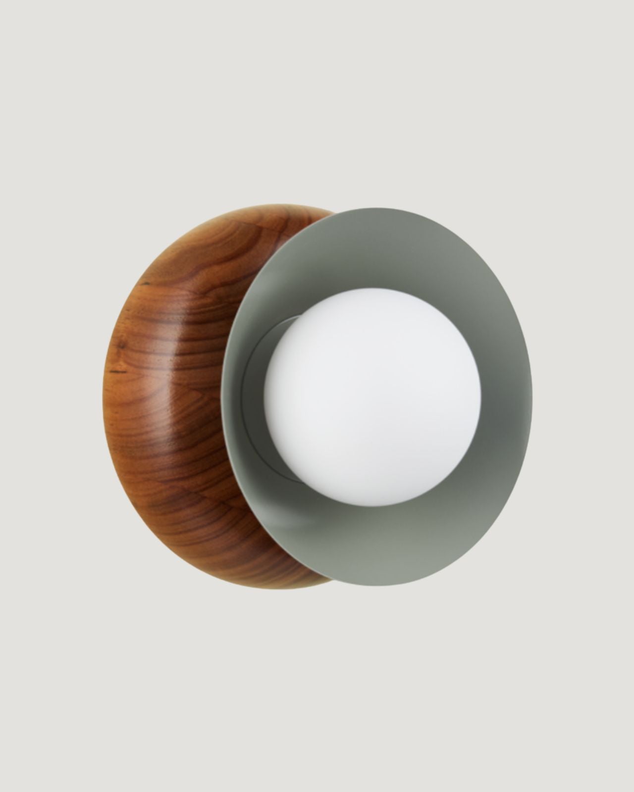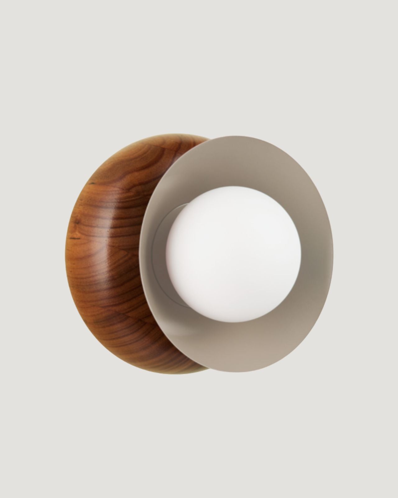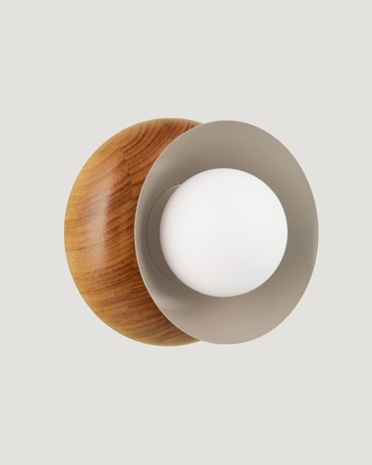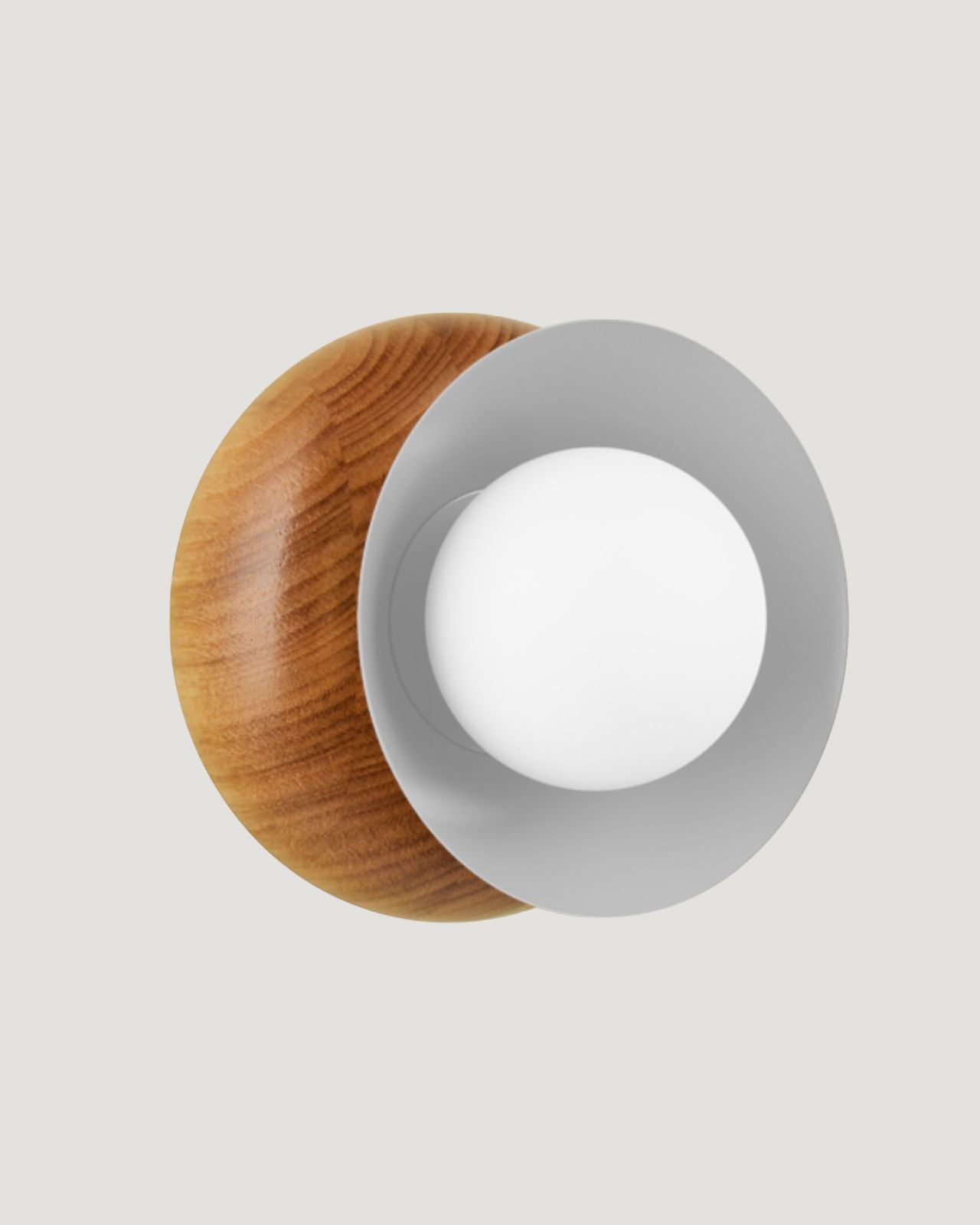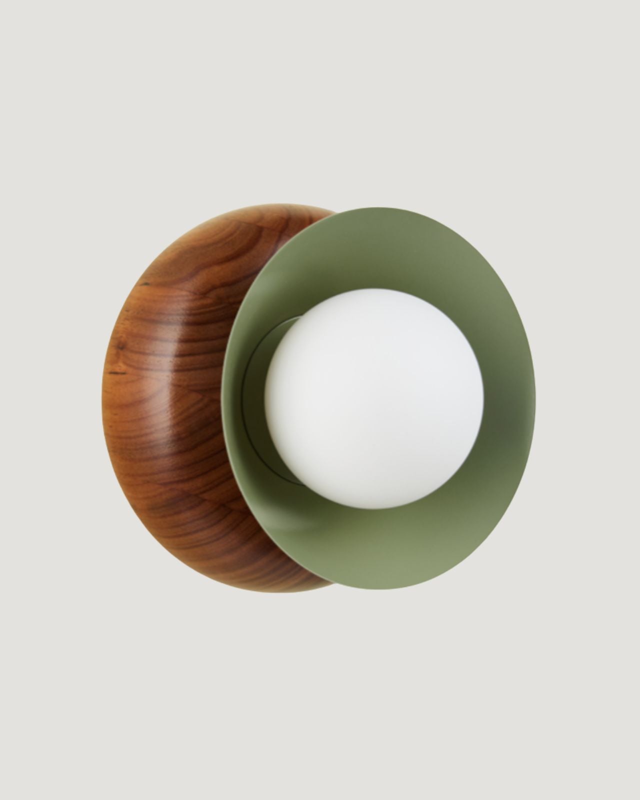 Introducing another beautiful new addition to Fluxwood's collection, located in Currumbin, Australia. Handcrafted from solid hardwood and topped with a sleek powder-coated brass shade, available in a variety of colours making it a versatile choice for any decor. Whether installed alone or in a group, it can add a warm and inviting touch to reading corners, lounge rooms, hallways, and bedrooms. With an E14 LED opal globe, this wall light evokes a warm ambience that's ideal for winding down and relaxing in your home sanctuary.