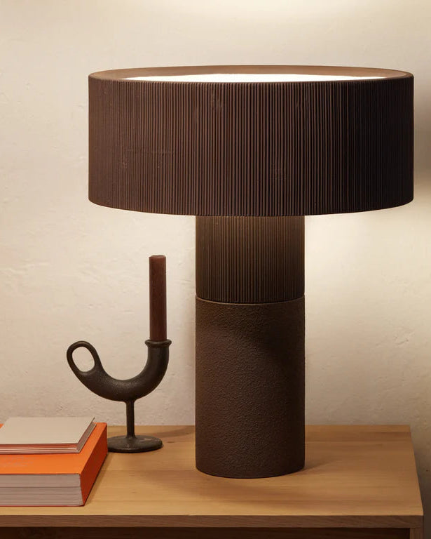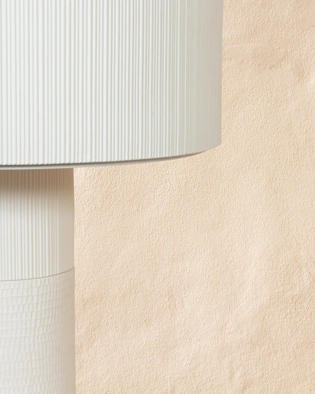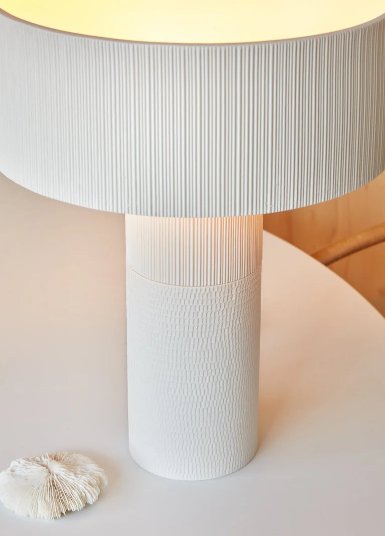 The Textured Wide Shade Table Lamp is a collaboration between mechanisation and craftsmanship. These fittings are 3D printed with clay printers, using hand-carved moulds created by artisans in Southern Spain. This intricate creation process creates an alluring texture that is organic and innate, reproduced using modern technology. Available in a variety of finishes and textures, this lamp is ideal for contemporary interiors.