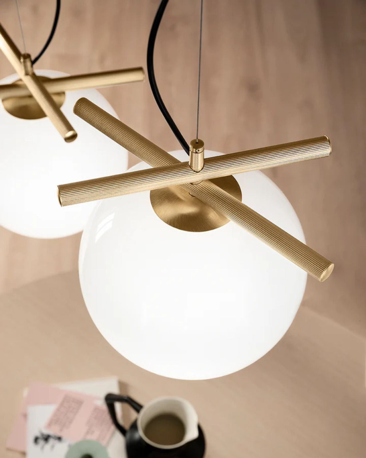 The Adjustable Rod Orb Linear Pendant features a simplistic and contemporary design. It consists of a galvanised metal structure with six triplex Murano glass diffusers. With its adjustable rods, achieve a perfectly balanced interaction with the glass shades. Style in a minimalist dining room for an added touch of elegance. This product is made in Italy.