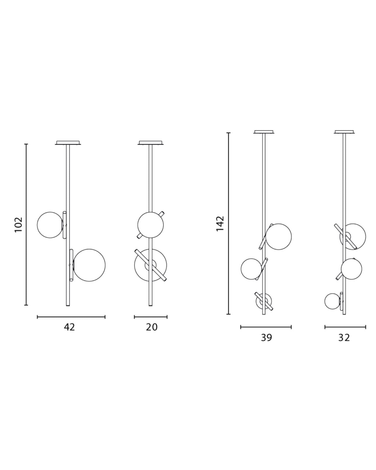 | Height | 2 Light | 102mm 3 Light | 142mm |