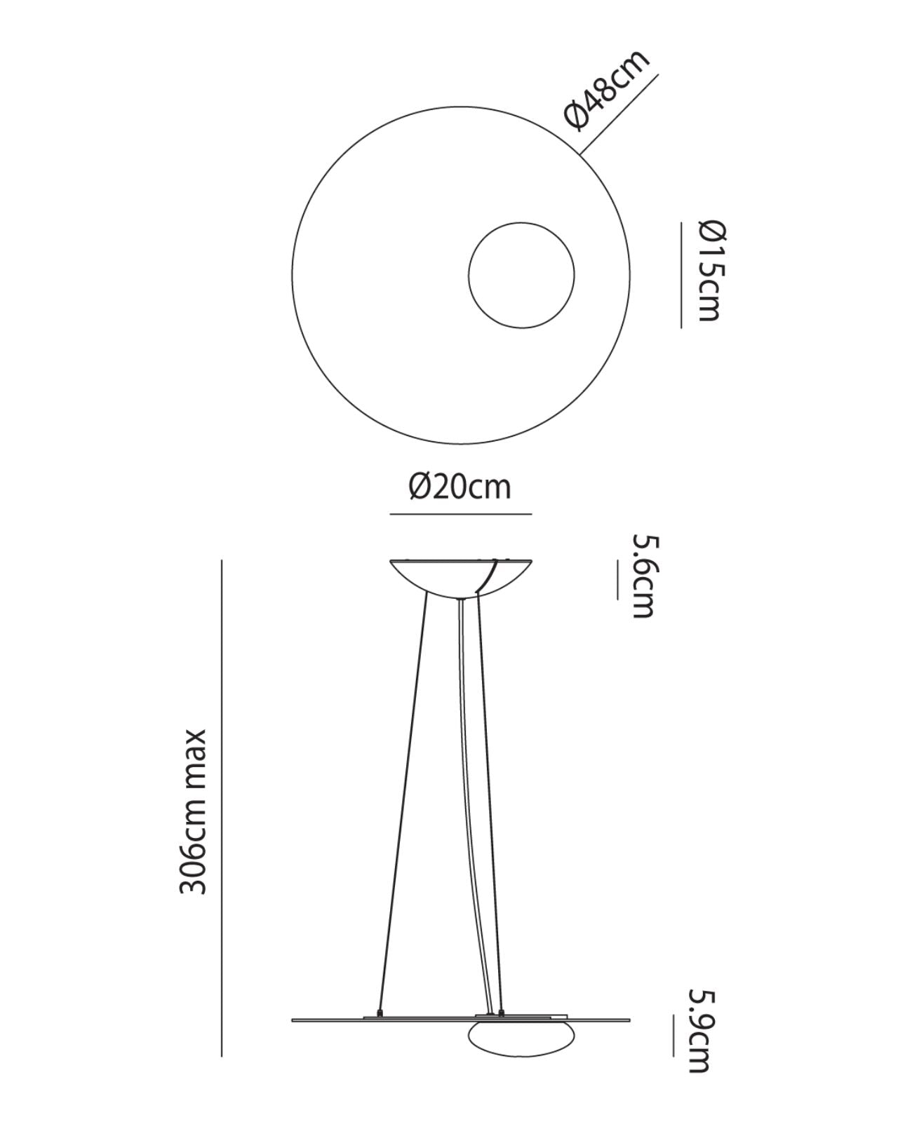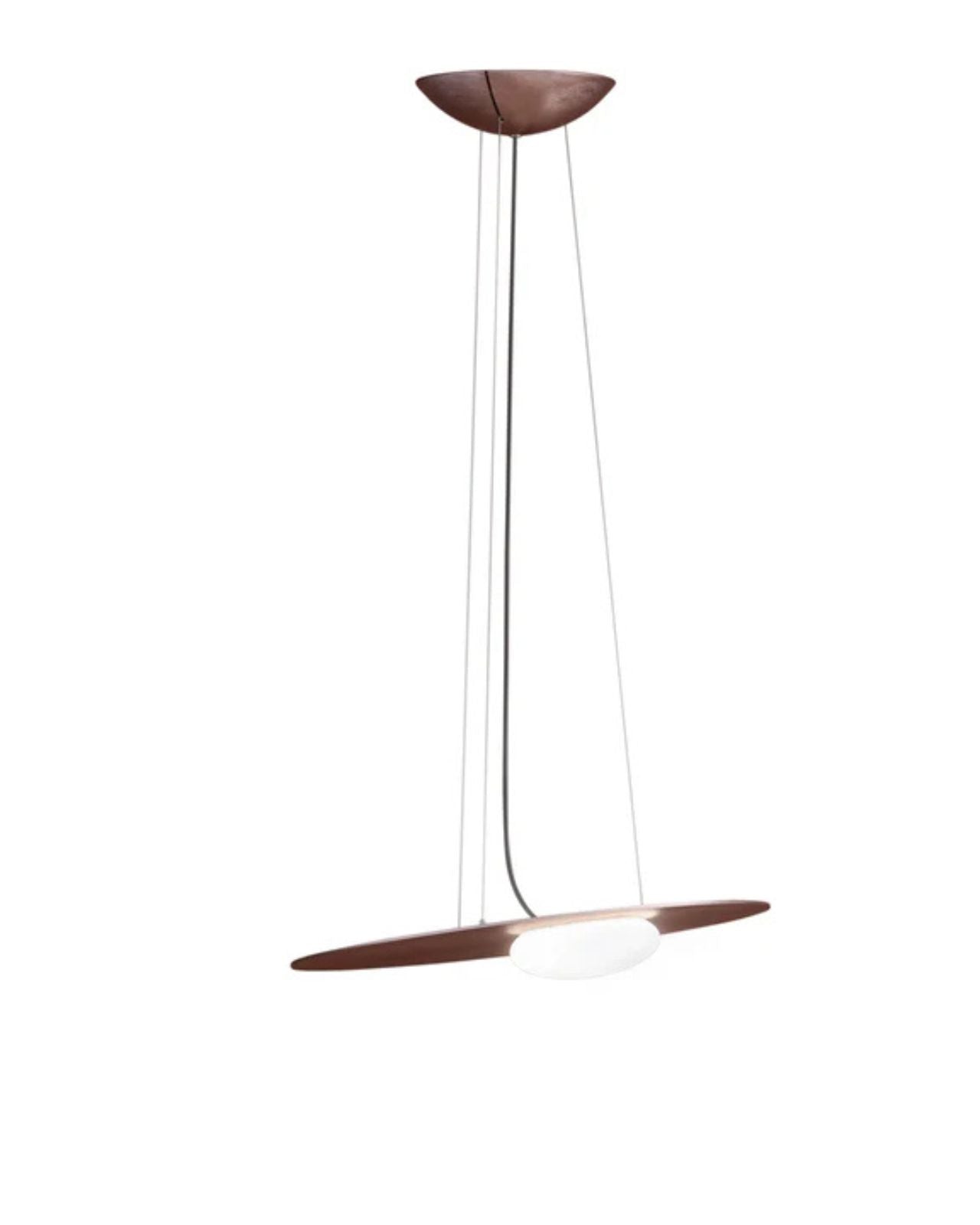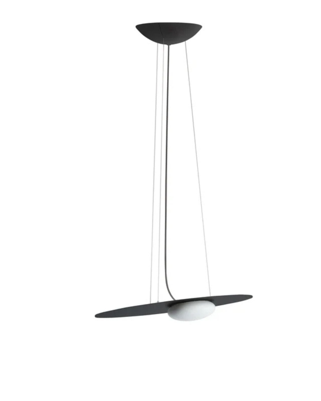 Designed in Italy with a minimalist profile this contemporary pendant is comprised of a painted aluminium disc and blown glass diffuser. An integrated LED light source is housed within its decentralised diffuser allowing for ample illumination.