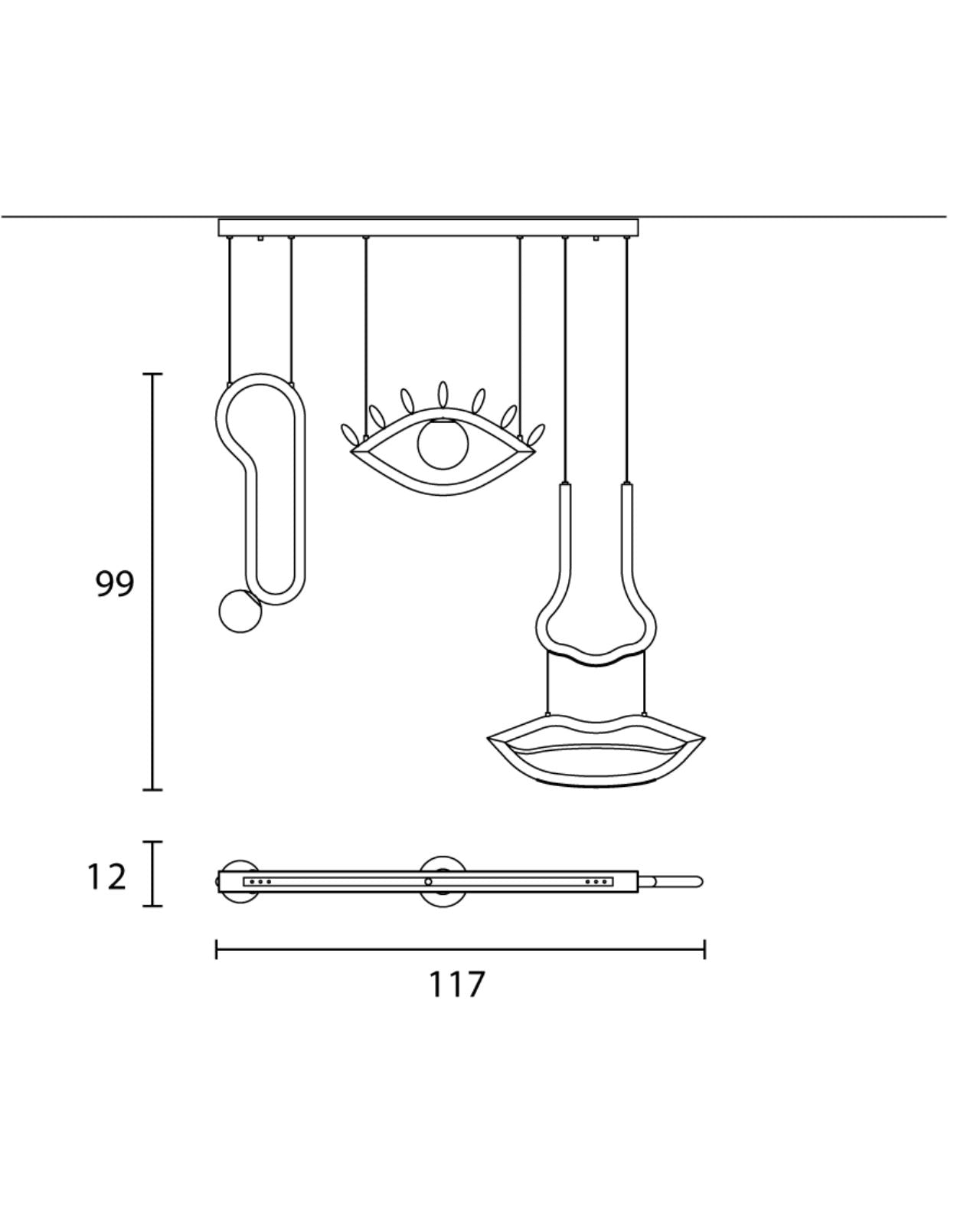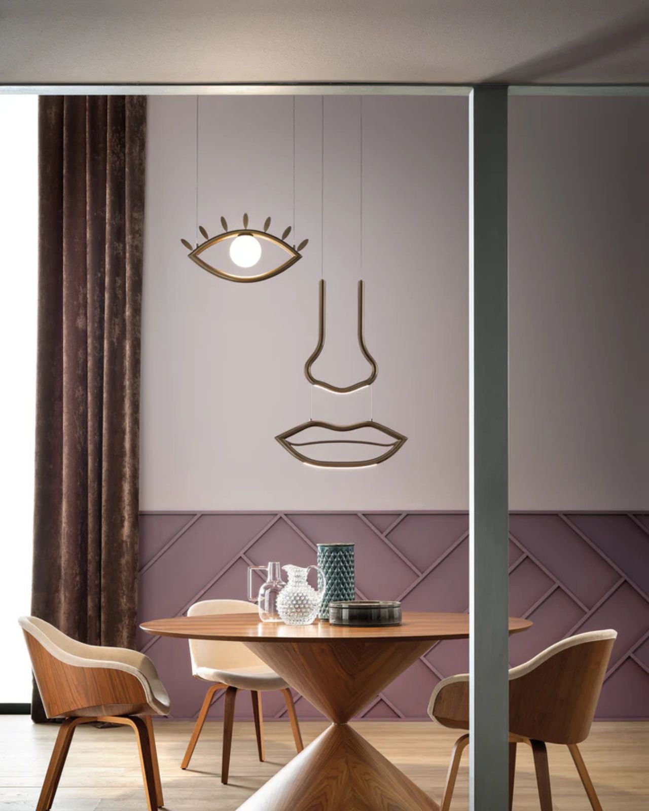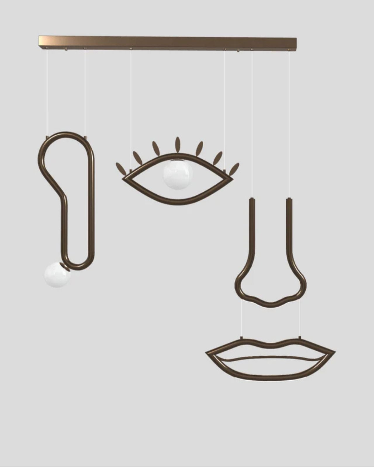 Surrealism shines in Visio's facial geometries; a tribute to the expressive power of the face from Nava + Arosio. Crafted from polished chocolate-coloured metal tubing, the pendant compositions can be formed into faces, features, and mysterious compositions. Every detail is etched meticulously, blending mysticism and geometry to create a unique aesthetic, combining the modern with the artisanal legacy of Masiero.