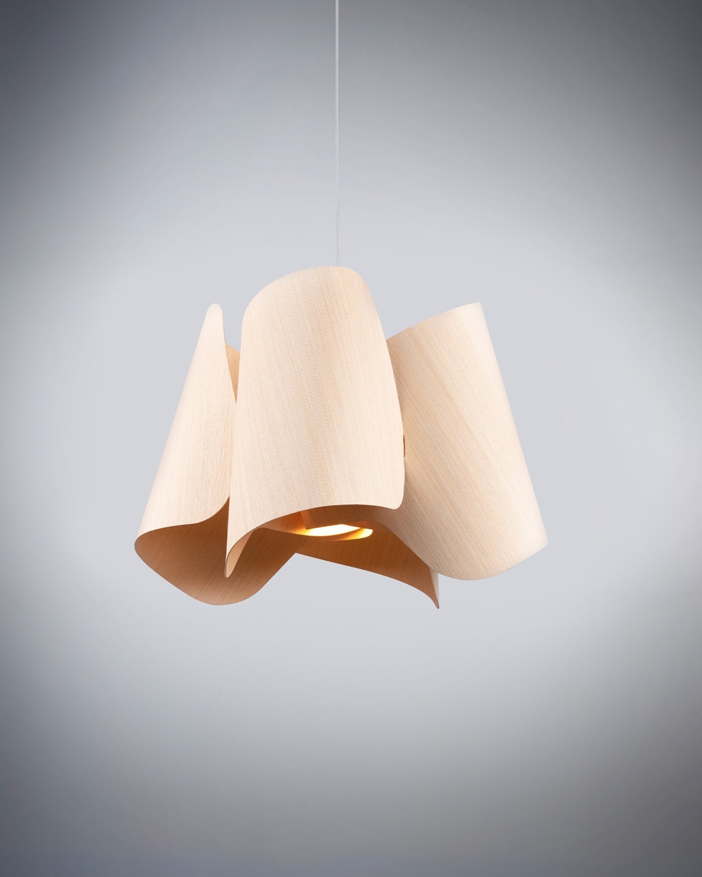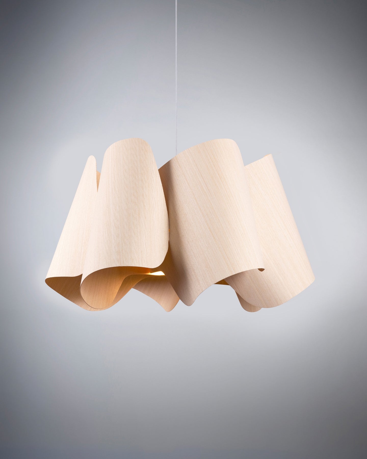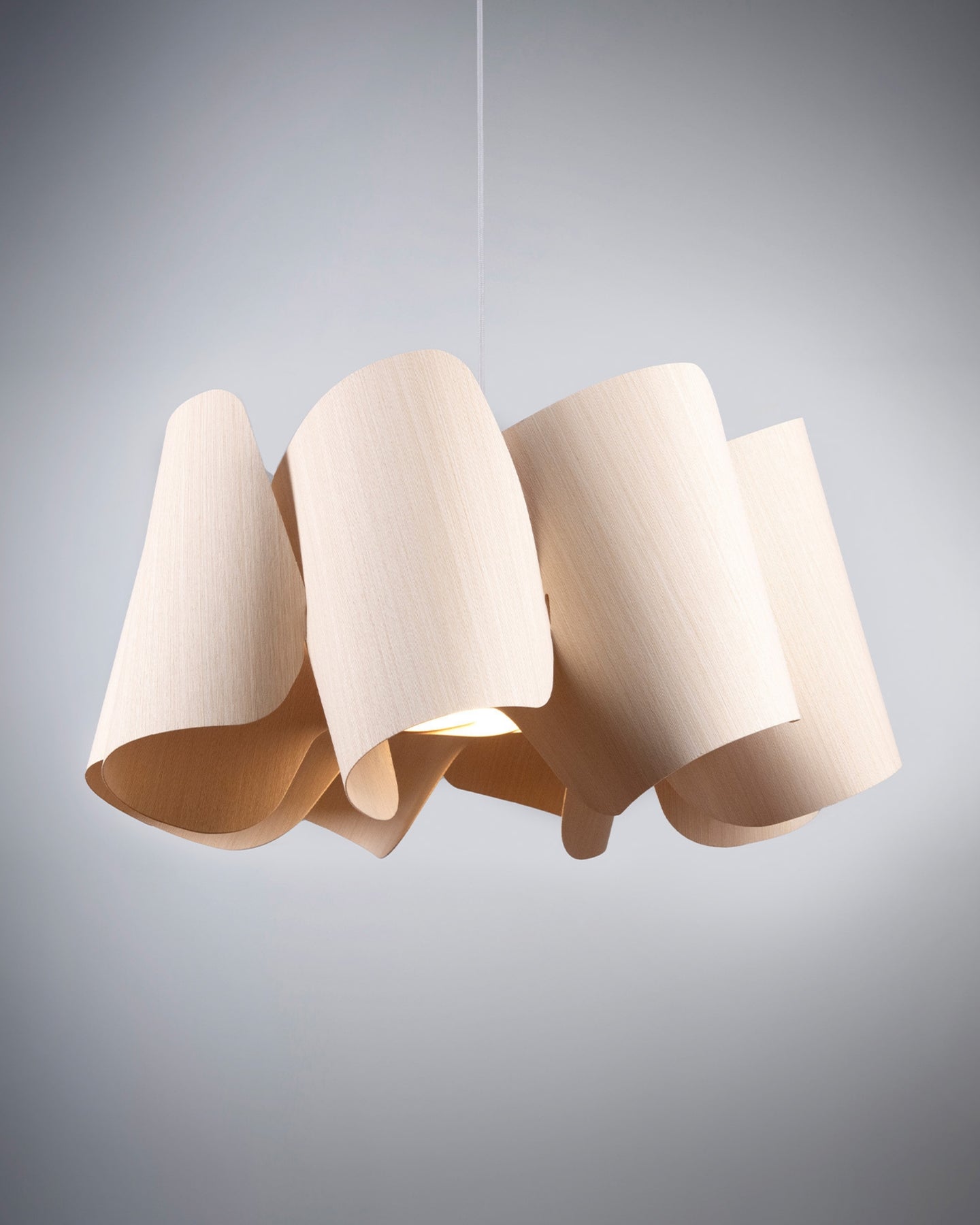 Modern pendant light with wavy design on a gray background