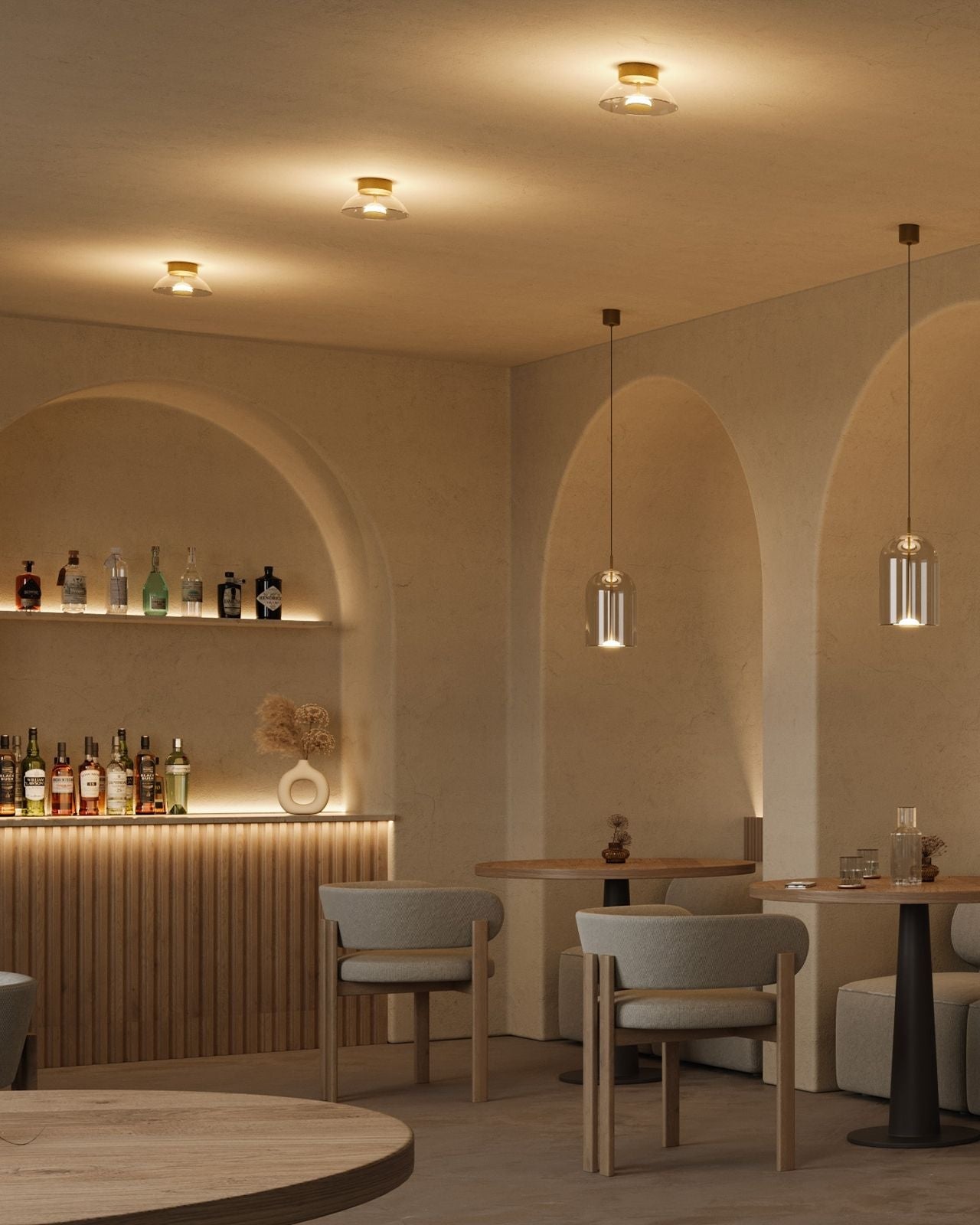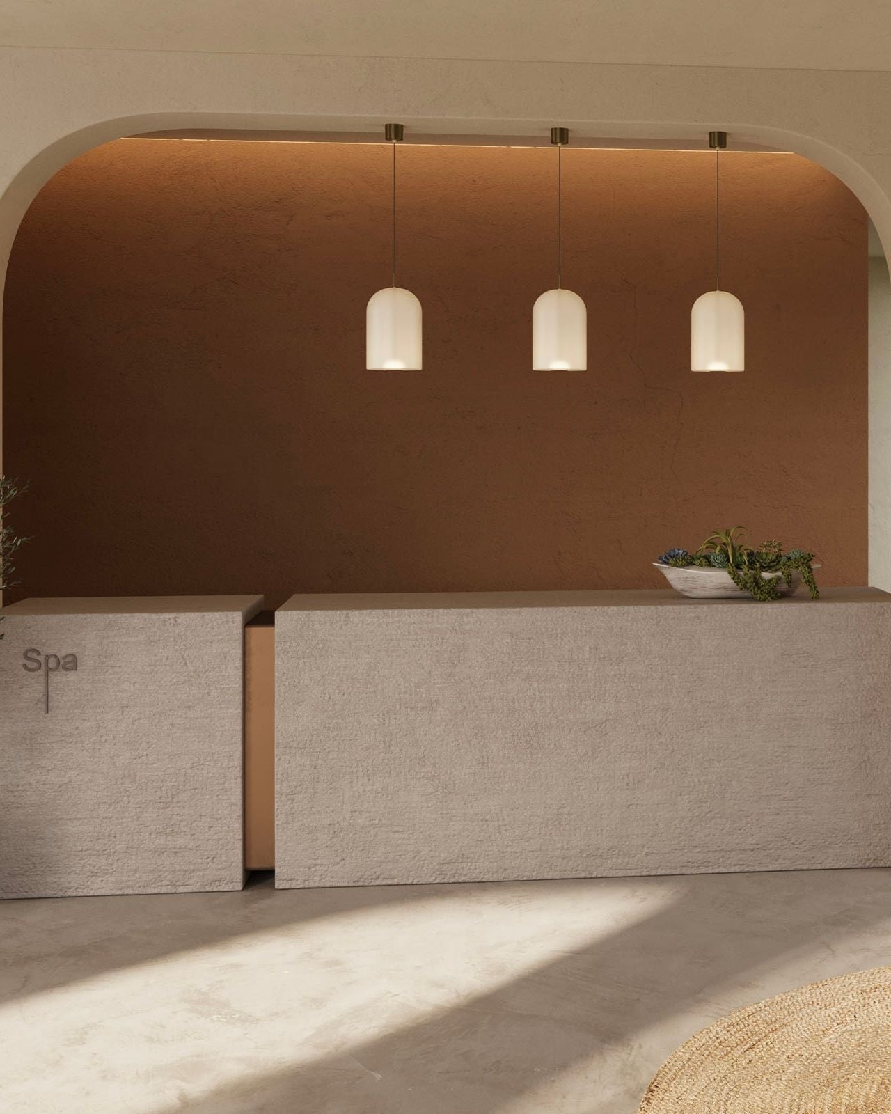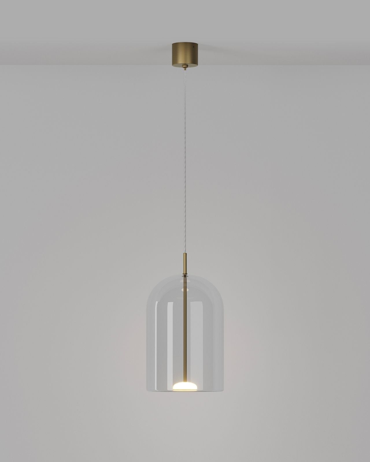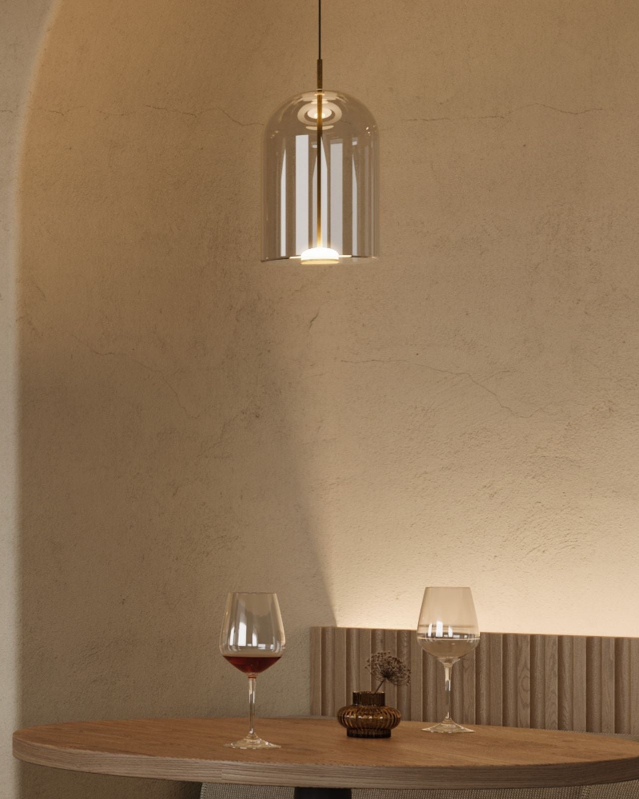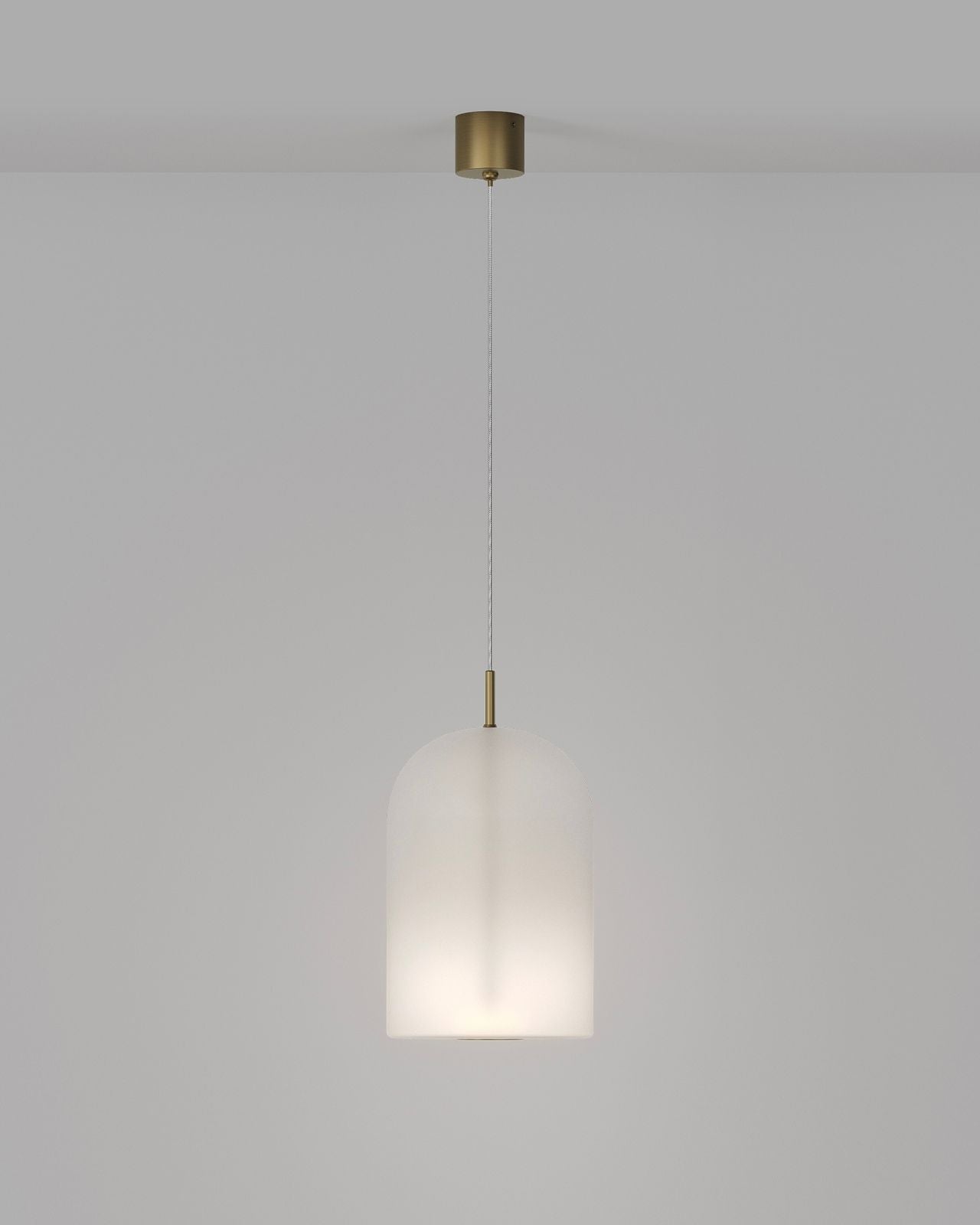 Hand-blown from durable borosilicate glass, the Elongated Glass Dome Pendant provides visual lightness and lasting quality. A signature Old Brass or Iron suspension rod complements the glass form, offering a warm contrast that enhances its elegant proportions. Designed for high ceilings, voids, stairwells, and other double-height spaces, this fixtures minimal silhouette makes it versatile across both residential and commercial applications. The pendant may be installed as a single feature light or arranged in clusters to create a strong architectural composition.