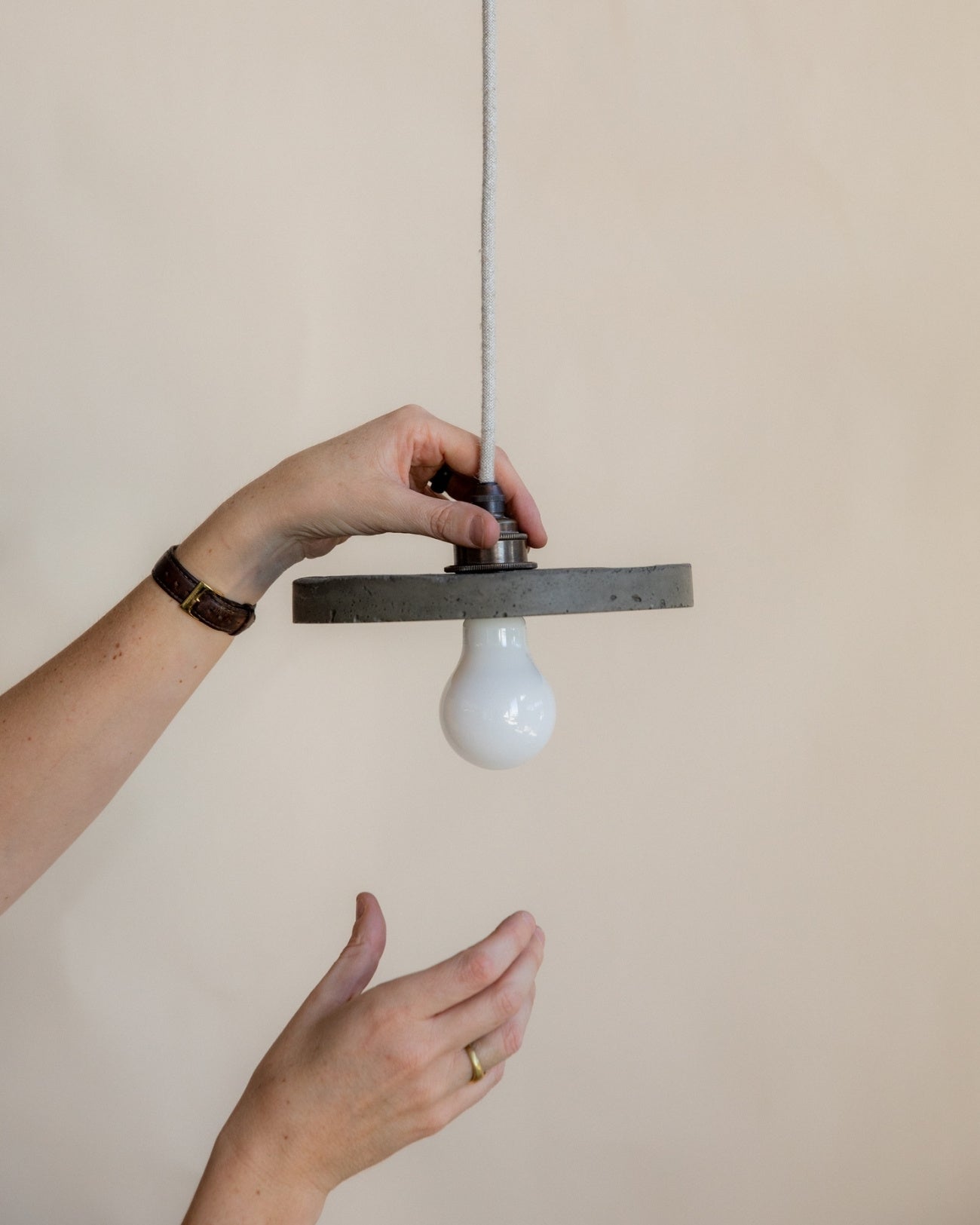 Person holding a pendant light