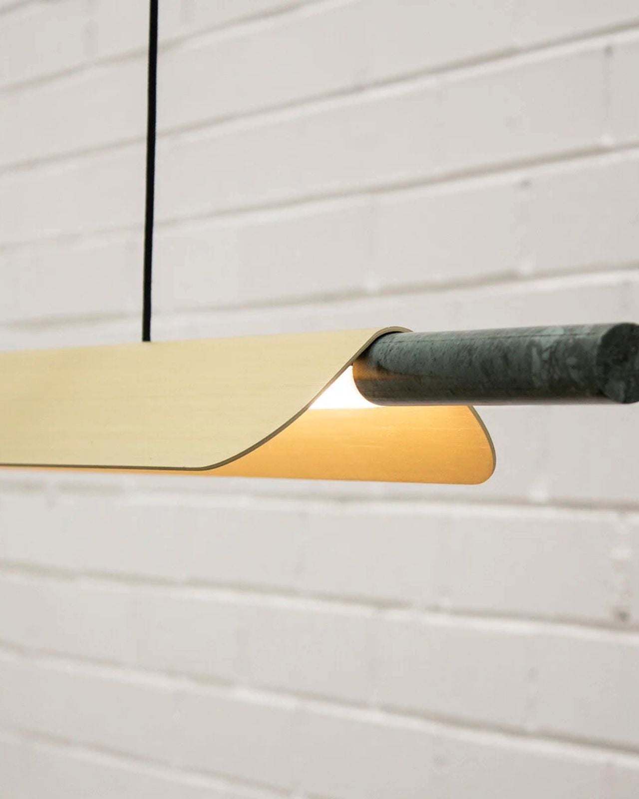 The Formation Anodised Metal Linear Pendant combines contemporary materials with innovative design to create an eye-catching fitting. Hand-assembled in Melbourne, Australia, this linear features a folded aluminium body that hides a warm white LED strip, and luxurious marble tips at each end of the pendant. Ideal for installation above dining tables, kitchen islands, or in professional settings, this fixture seamlessly blends style with functionality.