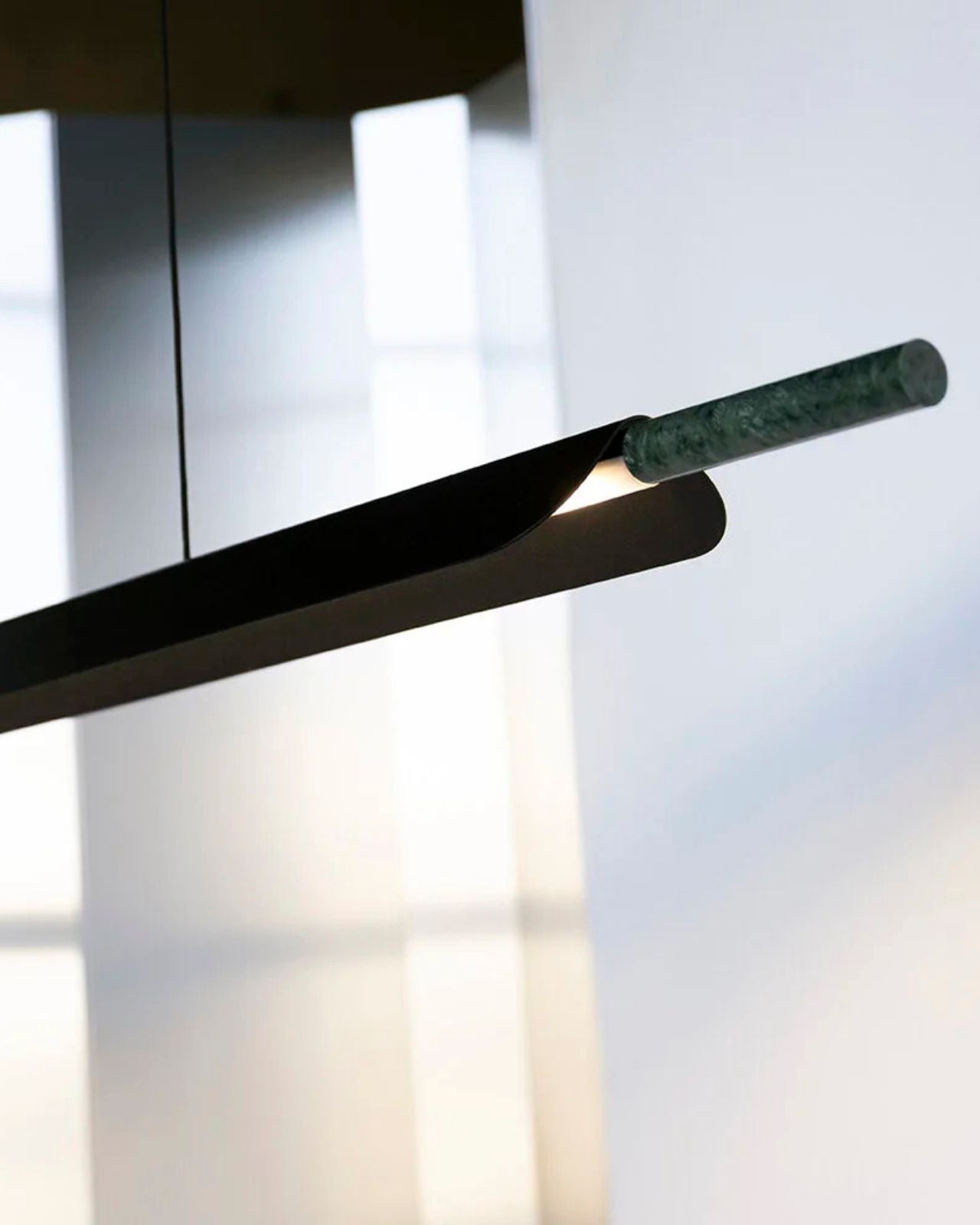 Hand-assembled in Melbourne, Australia, the Formation Linear Pendant is a blend of contemporary design and bold materials. Its sleek, folded form creatively hides an integrated LED strip, delivering a refined fitting. Accentuated by marble-tipped ends, this fixture exudes timeless sophistication. Designed for both residential and commercial spaces, it seamlessly blends task lighting with artistic appeal, making it an ideal choice for dining tables, kitchen islands, and professional environments.