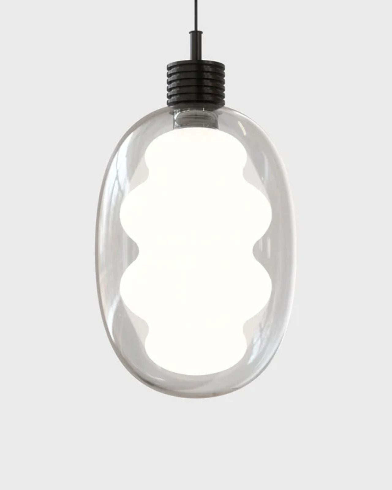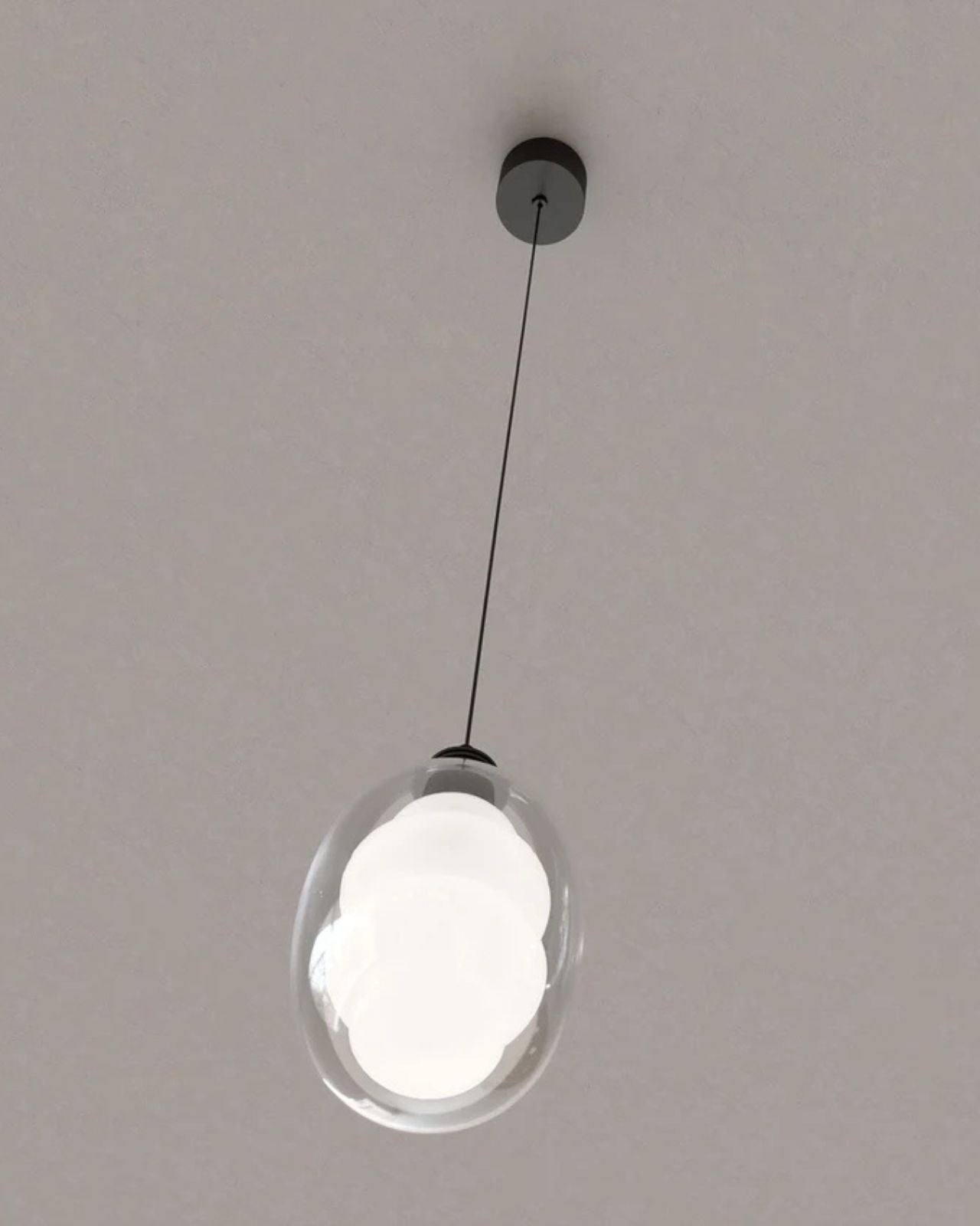 Crafted and designed in Italy, the Hand-Blown Abstract Glass Pendant is an eye-catching fitting. Featuring an opal, beehive-shaped diffuser, encased in transparent or tinted glass. With aesthetic exploration in mind as well as functionality, this fitting evokes a natural presence with it's curved organic shapes. Choose from two different sizes, three metal finishes, and eight glass finishes for a customised pendant that pairs well with the feature colours of the desired installation space.