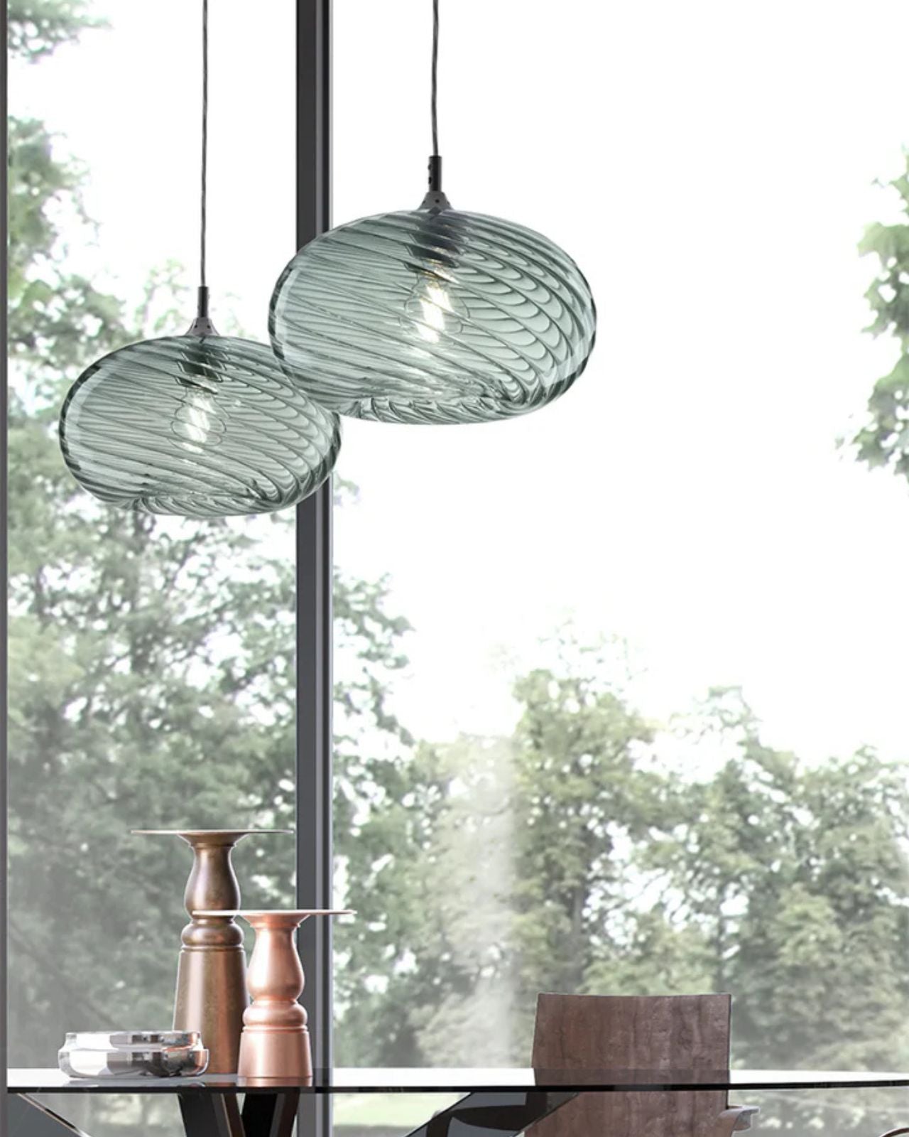 Italian Ribbed Glass Pendant Light | Assorted Configurations - Oval / Large / Green