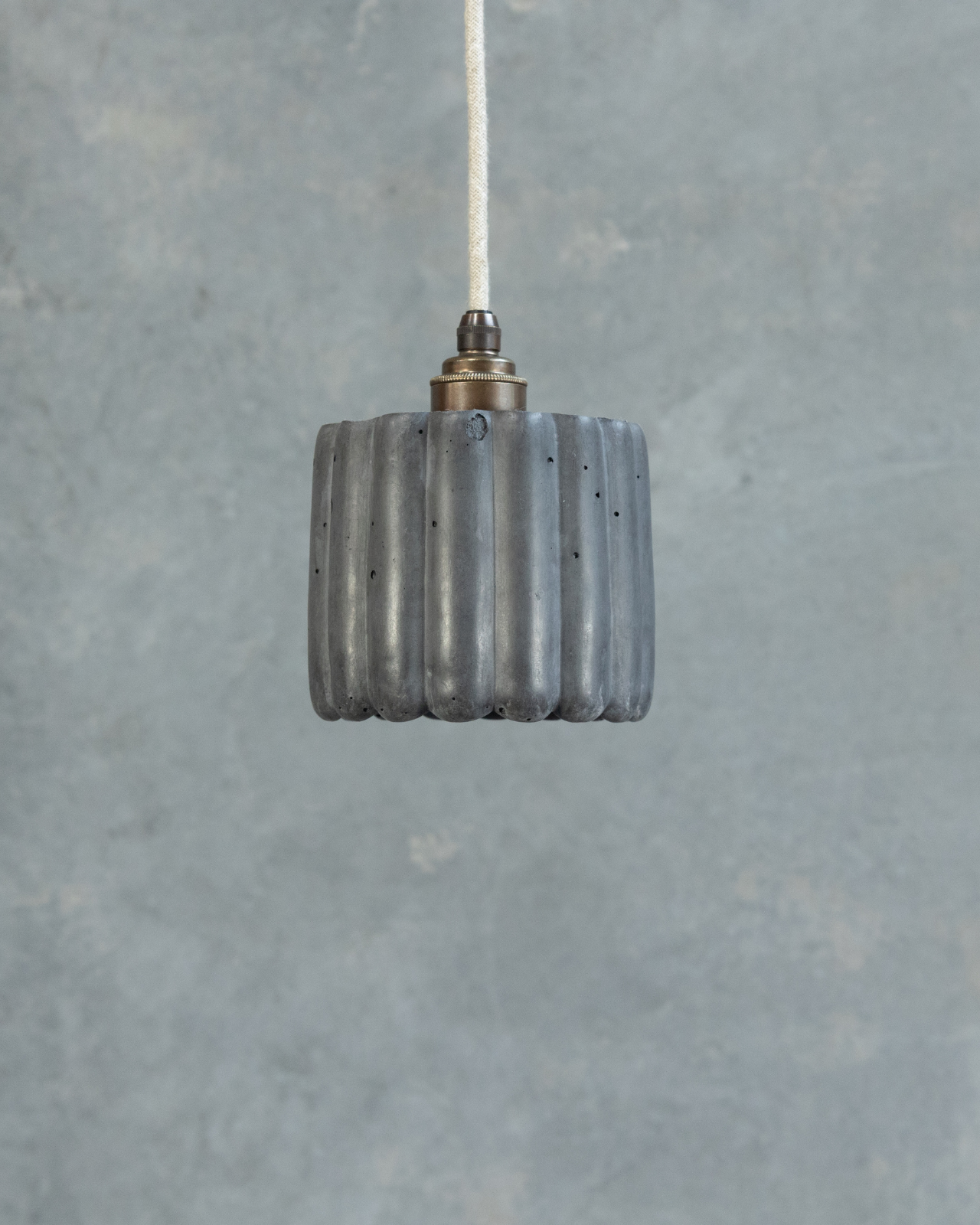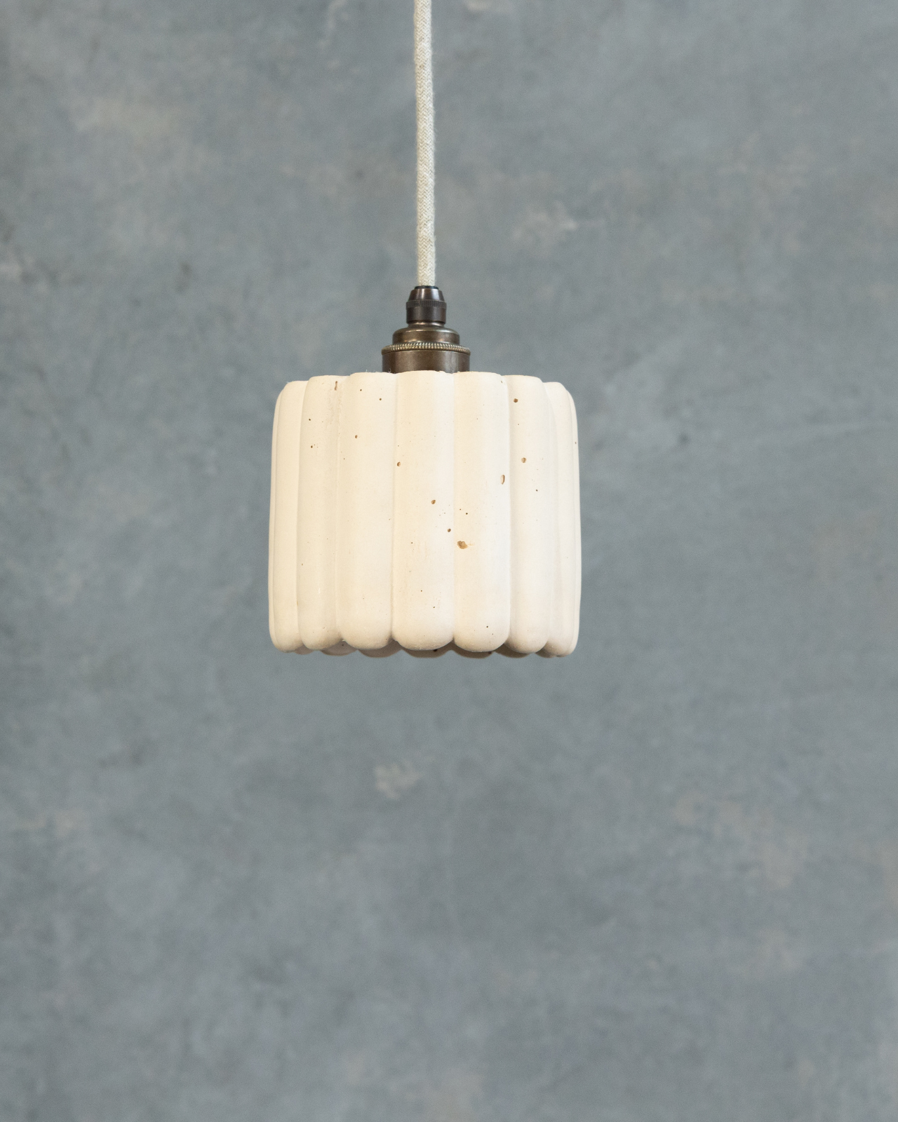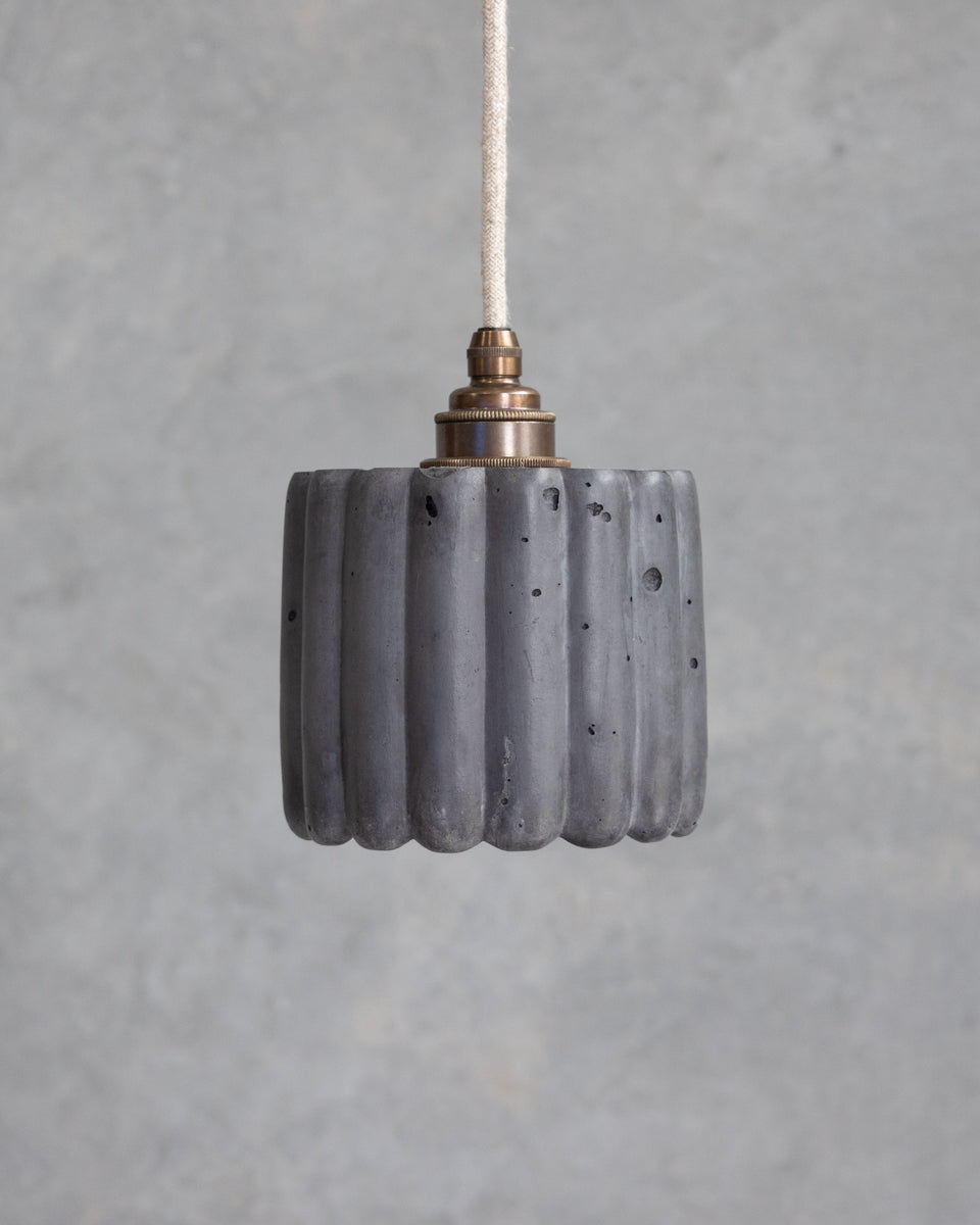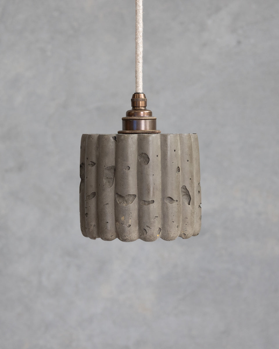 The Small Fluted Concrete Pendant Light features a cylindrical shade defined by a fluted surface. Hand-poured in the Northern Rivers, each pendant is crafted using a blend of concrete and glass fibres to create a lightweight yet durable fitting. The contrast between the raw materiality and the refined fluted form adds visual interest while remaining versatile across a range of interiors.
