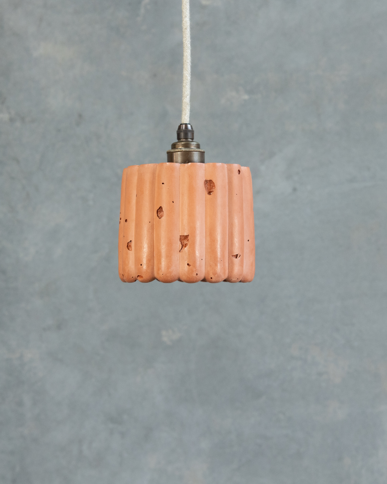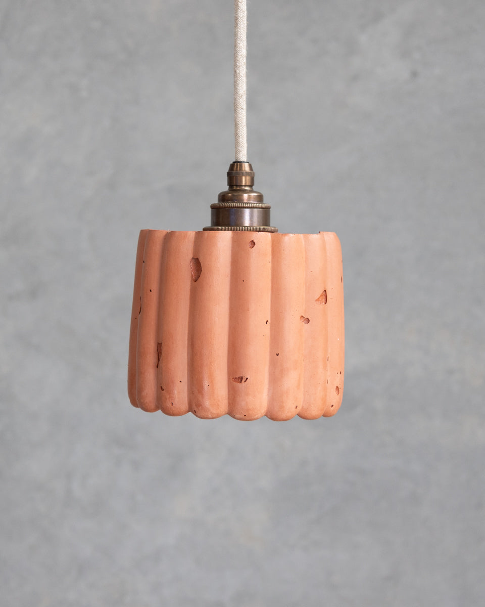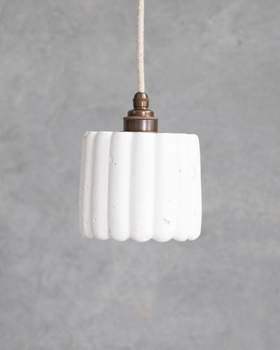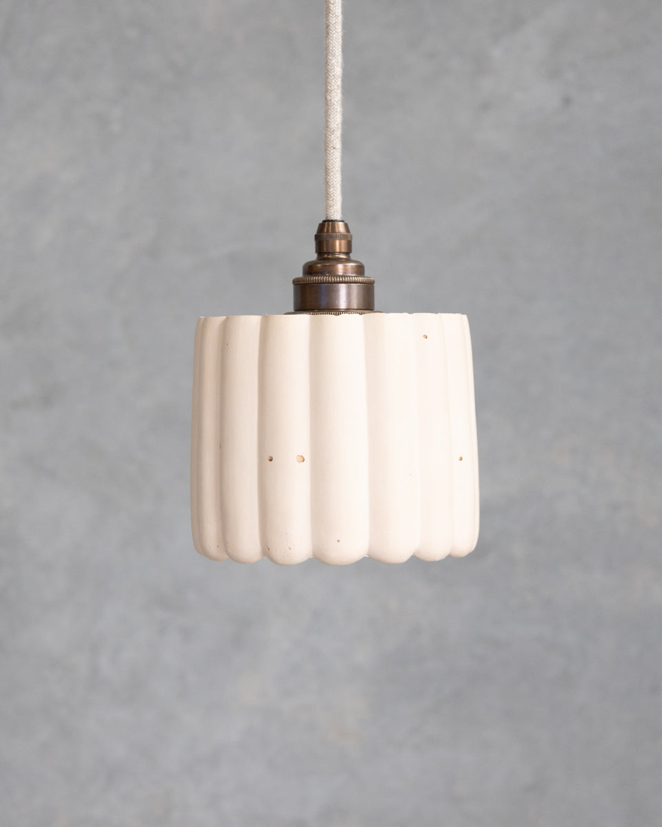 The Small Fluted Concrete Pendant Light features a cylindrical shade defined by a fluted surface. Hand-poured in the Northern Rivers, each pendant is crafted using a blend of concrete and glass fibres to create a lightweight yet durable fitting. The contrast between the raw materiality and the refined fluted form adds visual interest while remaining versatile across a range of interiors.