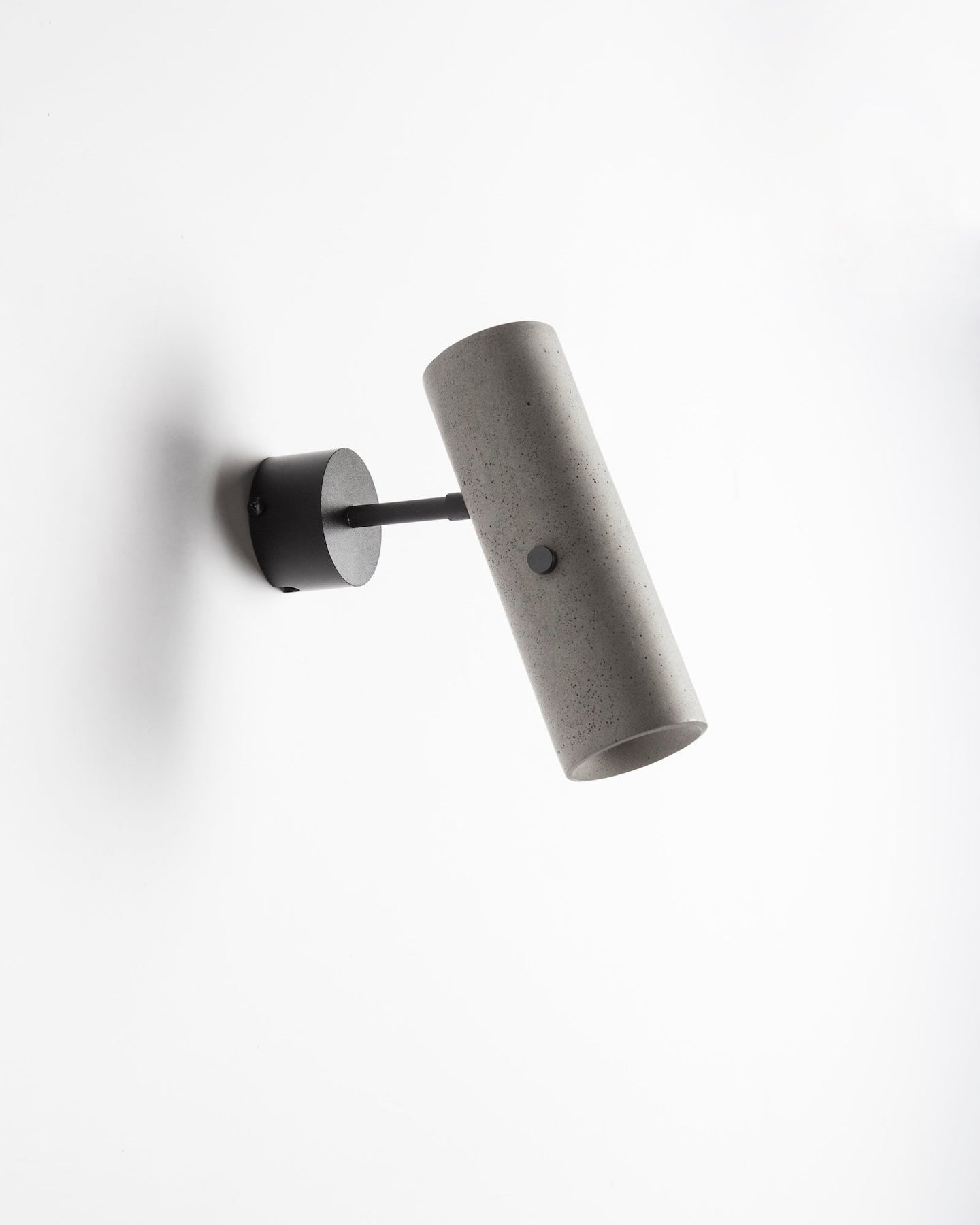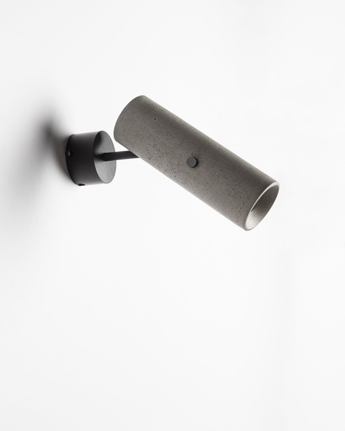 The LV spot light is crafted from recycled concrete and constructed with black anodised aluminium fixings. Due to the inherent nature of concrete, natural variances in texture and colour are to be expected and celebrated, making each piece unique. Designed with a pivot arm and fixing plate, this concrete light can cleverly be adjusted to suit your needs and doubles as both a wall or a ceiling-mounted spotlight.