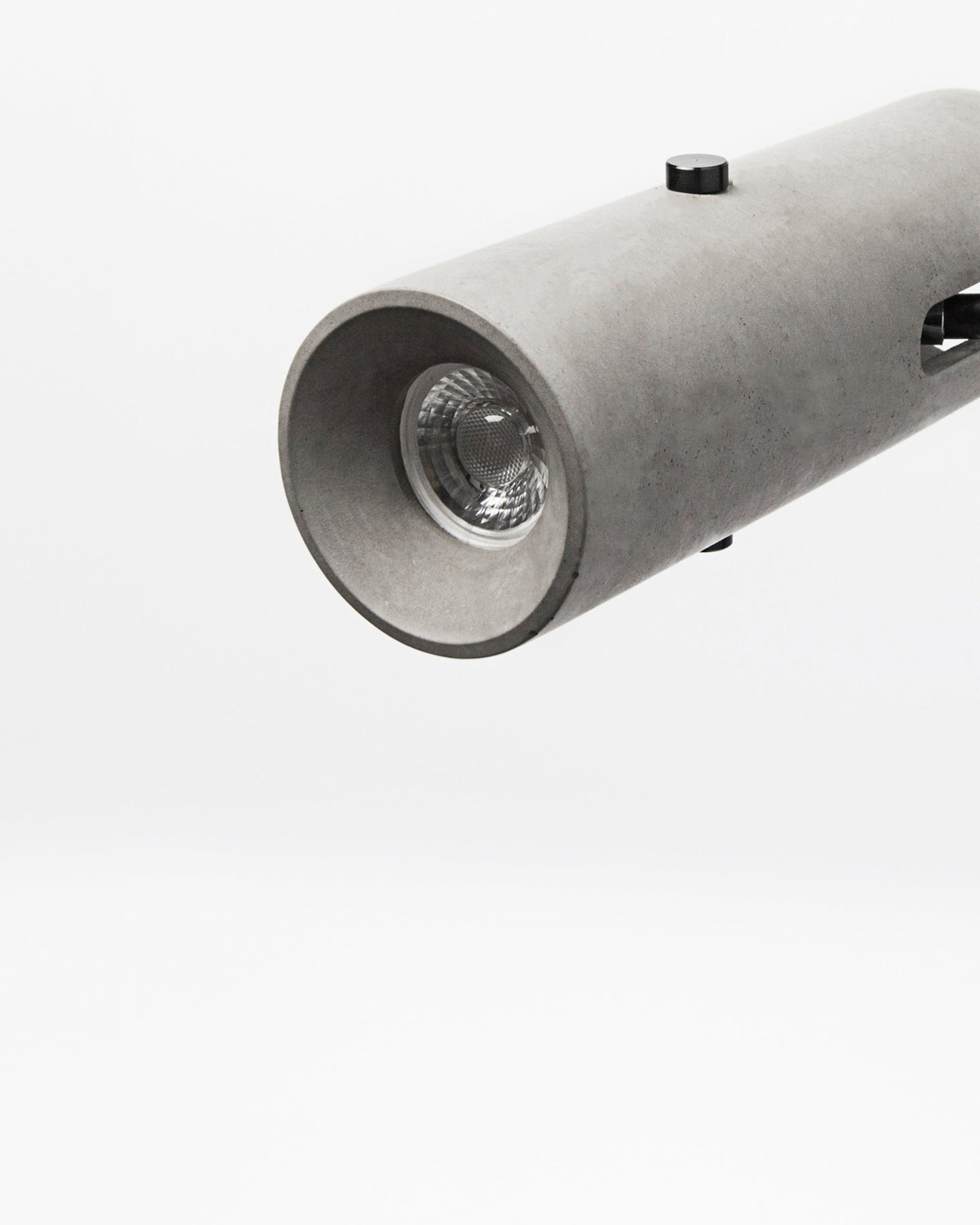 Cylindrical concrete light fixture on a white background
