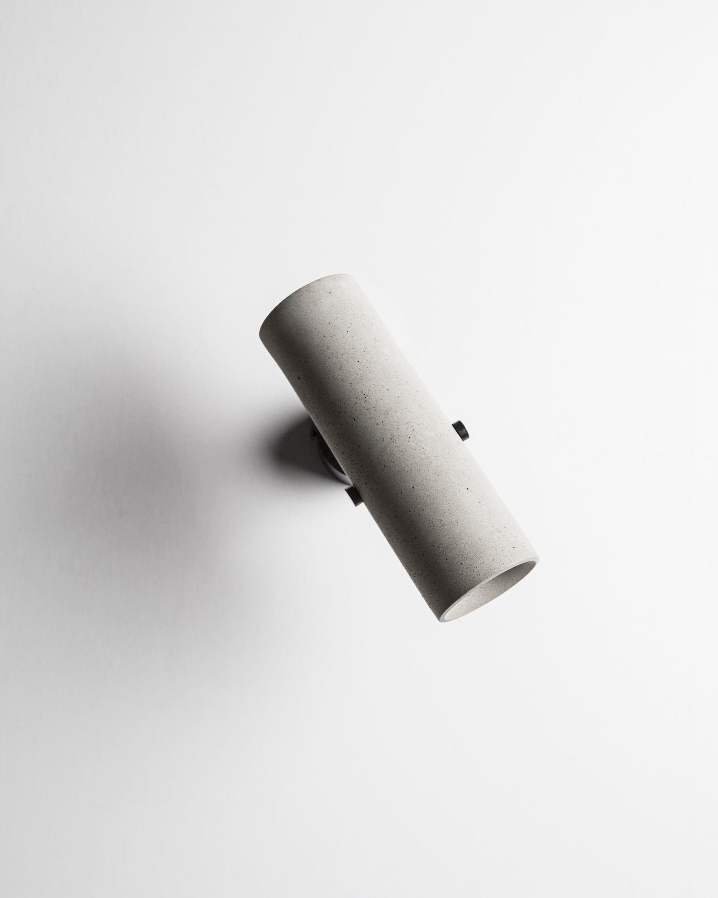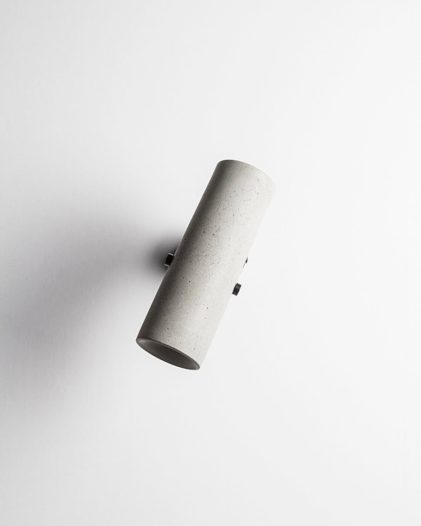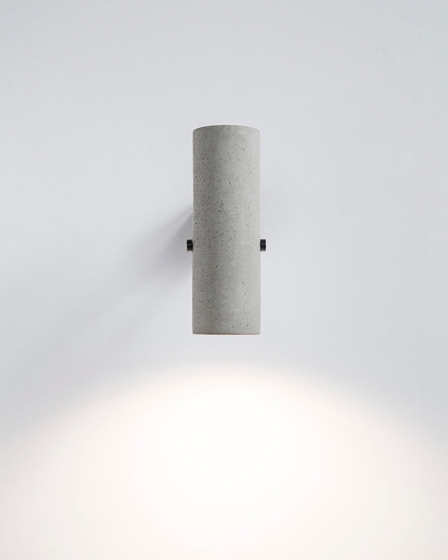 Cylindrical concrete wall light fixture on a white background