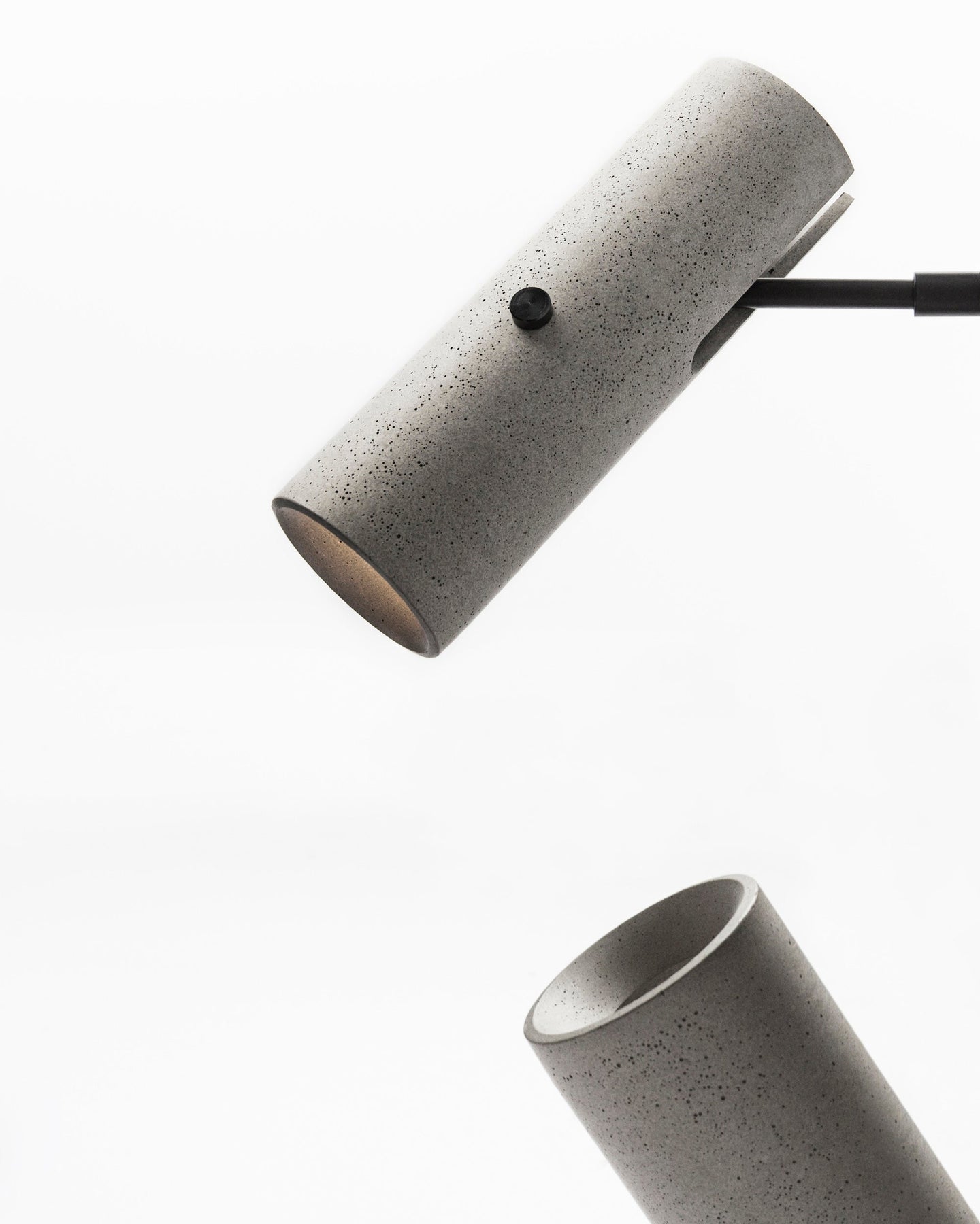 Two cylindrical concrete lights on a white background
