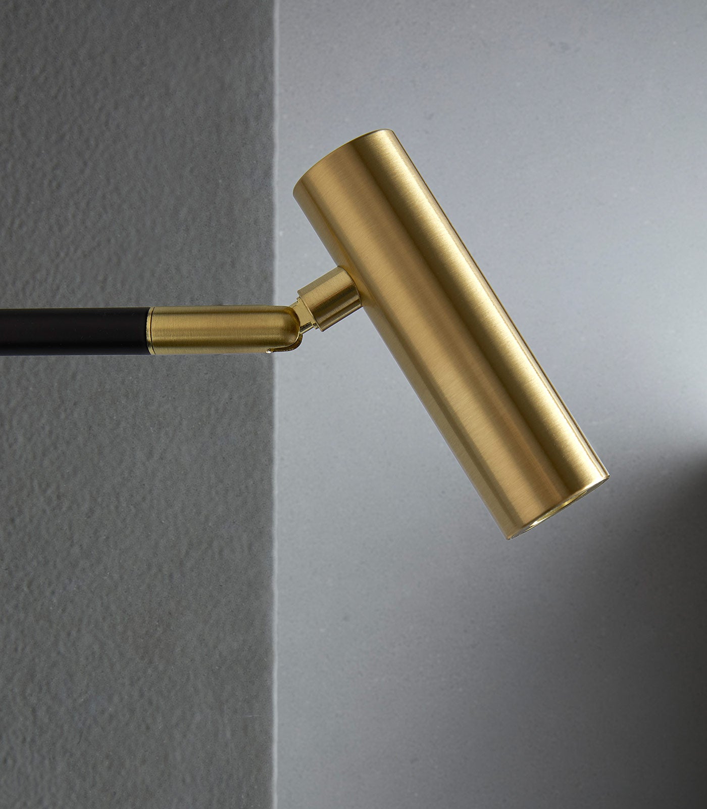 The Contemporary Matte Black Spotlight is designed to provide a direct light suited for use as a reading, bedside or desk light. This sleek wall light provides high-functionality with its touch dimmable feature and adjustable shade. Provided with an integrated COB LED 5W 3000K light source. Made from steel this modern design is available in complete Matte Black or Matte Black with a Matte Brass shade.
