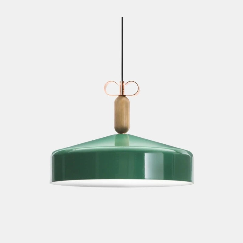 Featuring a painted metal shade, topped with timber beads and a copper 'butterfly' these hand-made Italian pendants are sure to turn heads. All feature a painted white interior for great light reflection.