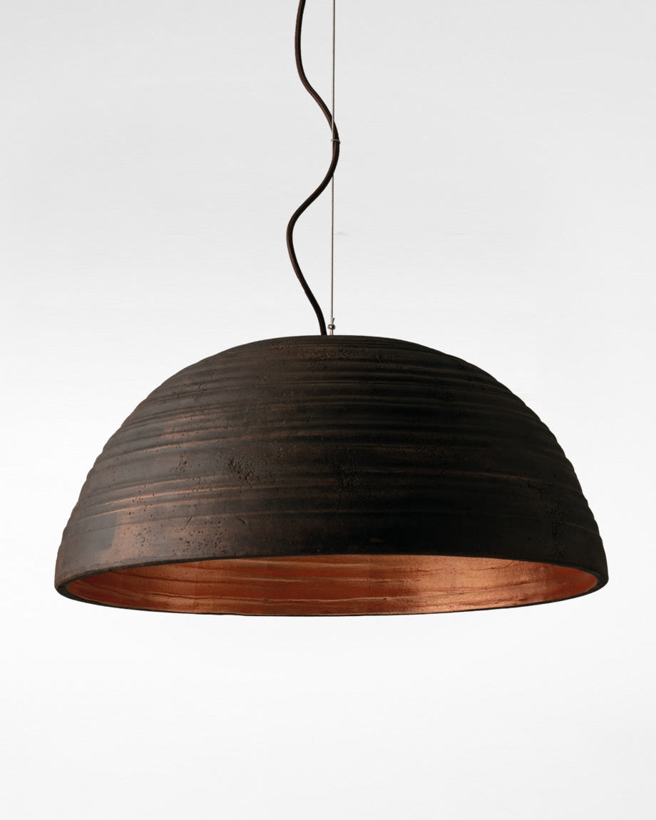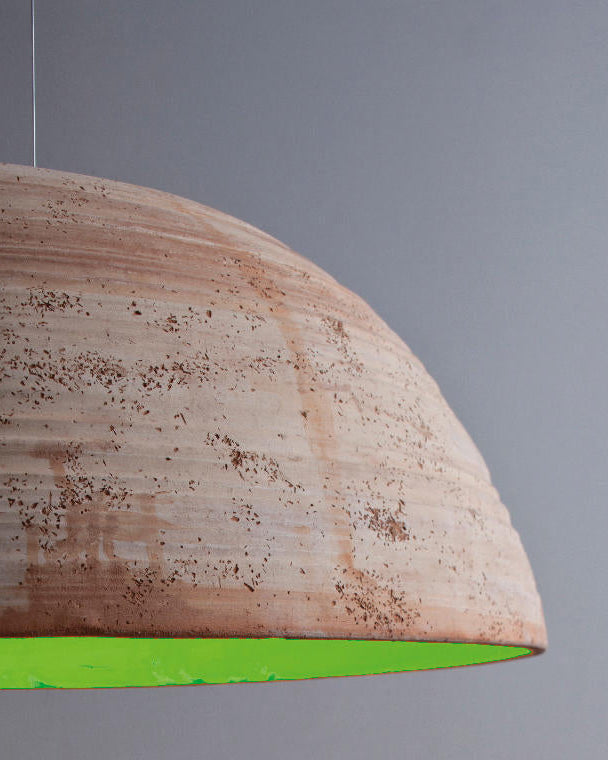A stunning contemporary domed pendant light hand made to perfection in Italy, crafted from terracotta as an ode to Italian architectural history. Thanks to the shiny colours on the inside of the dome, this light radiated a warm, coloured glow. Available in three different sizes, this pendant suits both traditional and contemporary settings alike.