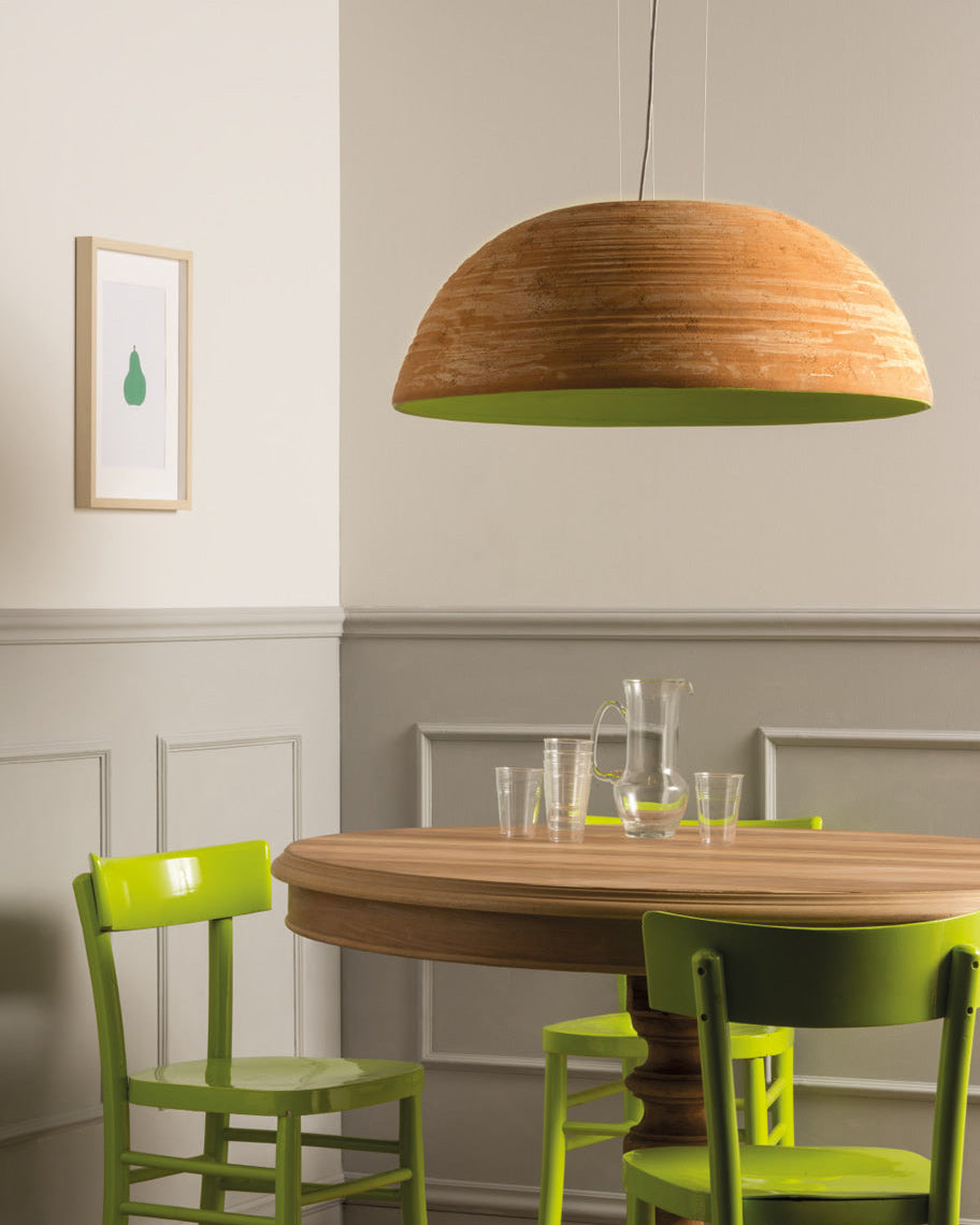Italian Terracotta Black Pendant Light Green Interior dining area