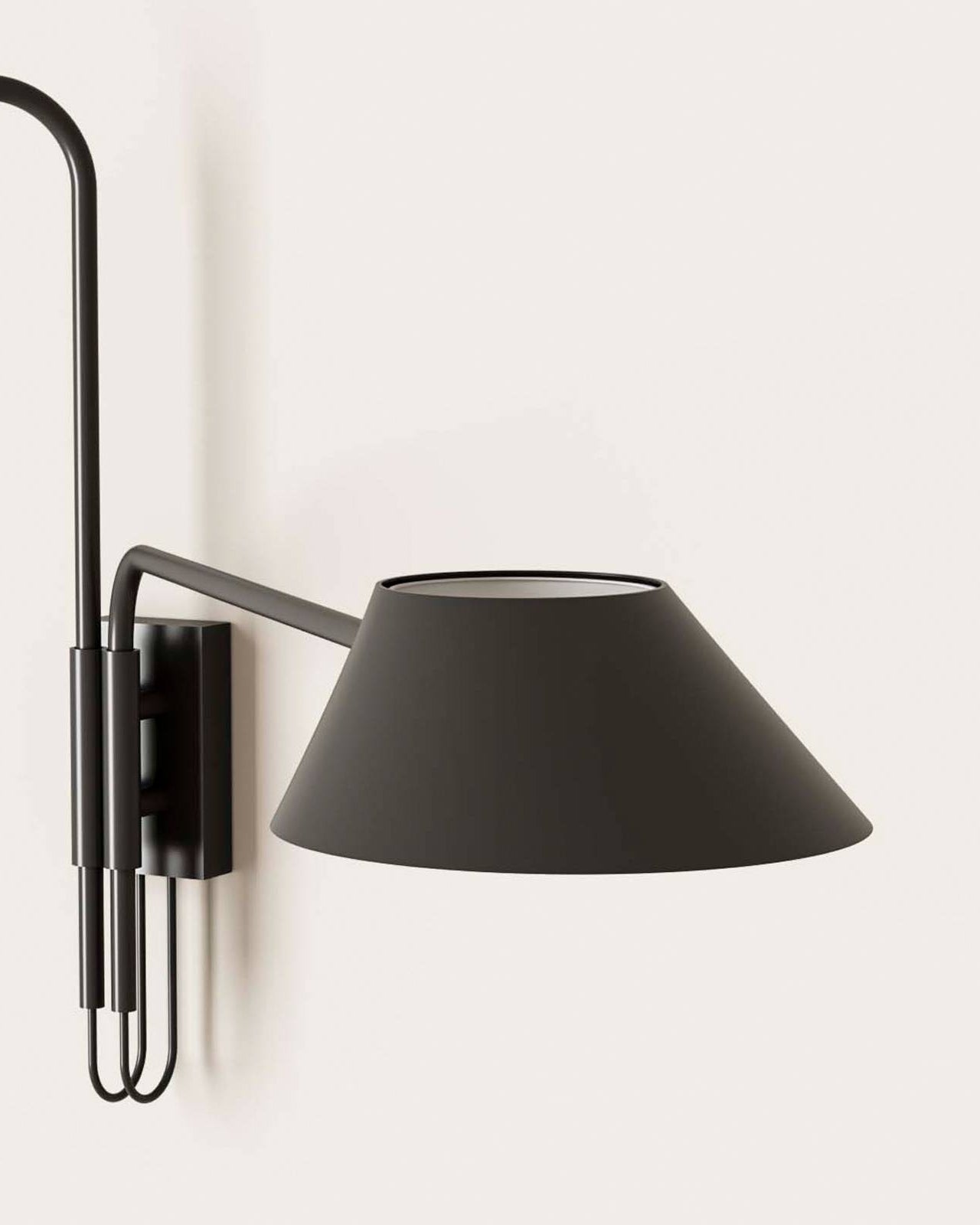 Protruding from the wall in an angular fashion this design combines functionality with contemporary design. Finished in Matte Black this adjustable fitting is suited for installation over living room seating, office desks or master beds. Its form bold yet clean will become a focal point within any interior emphasised by its adjustability to swerve.