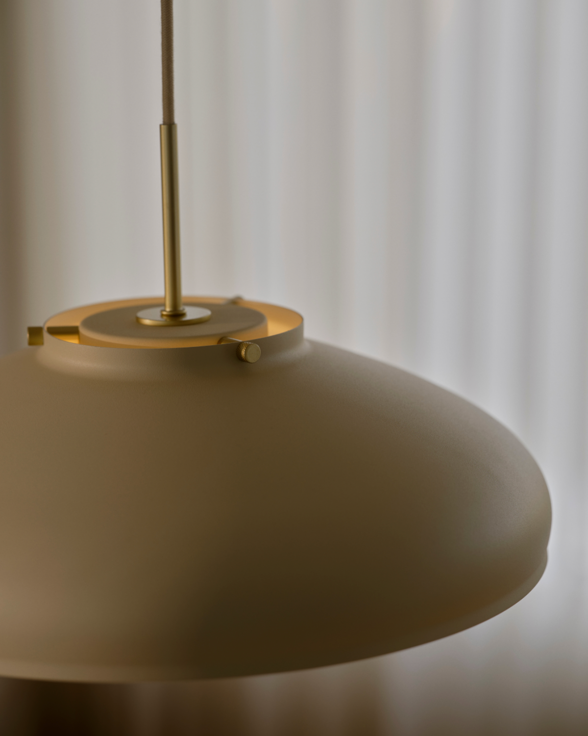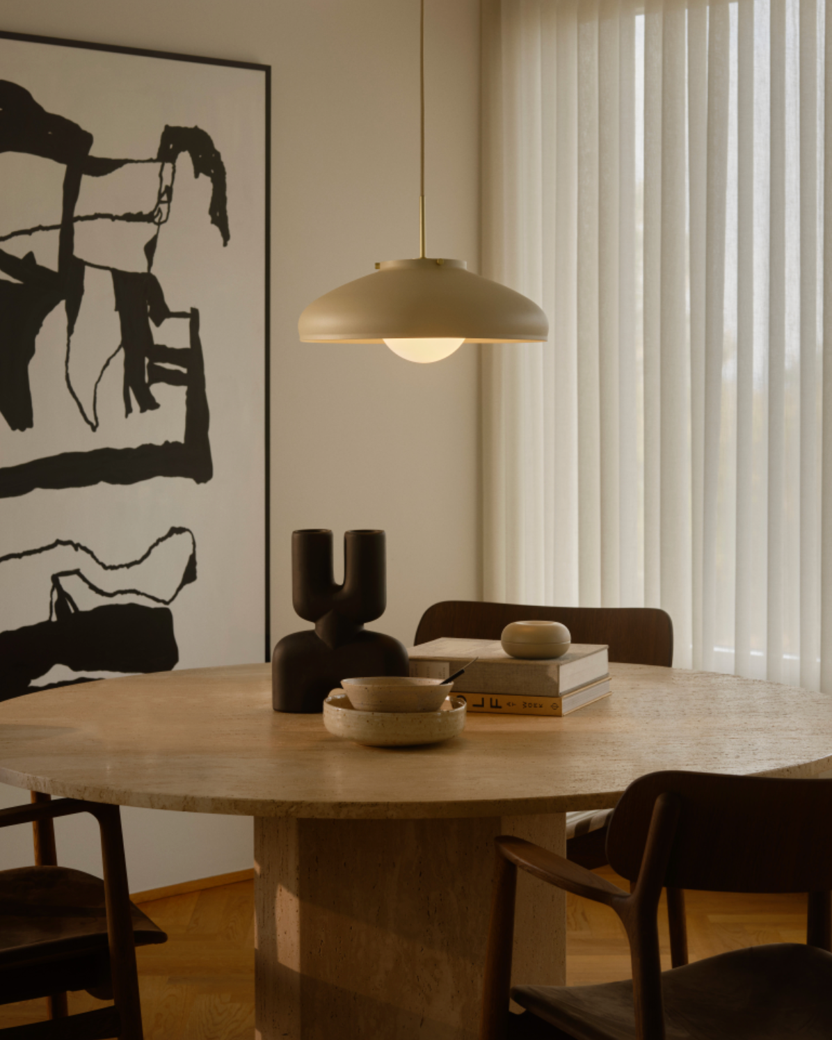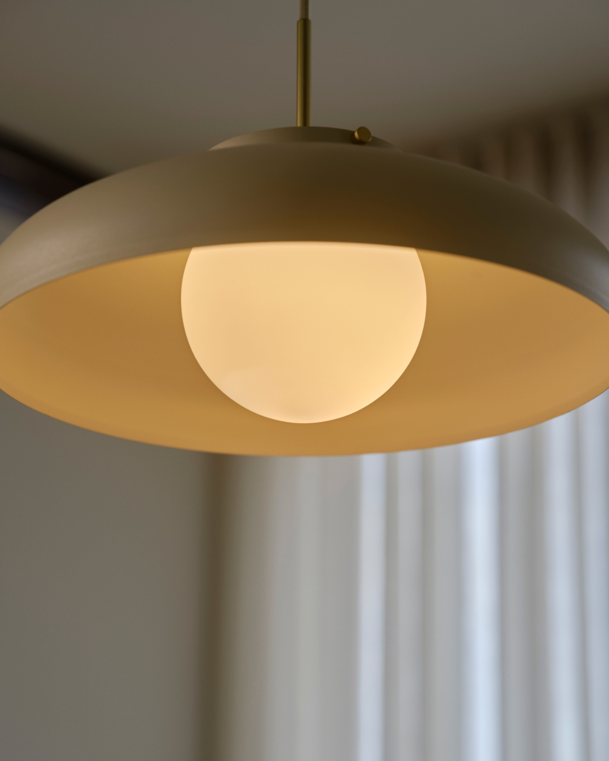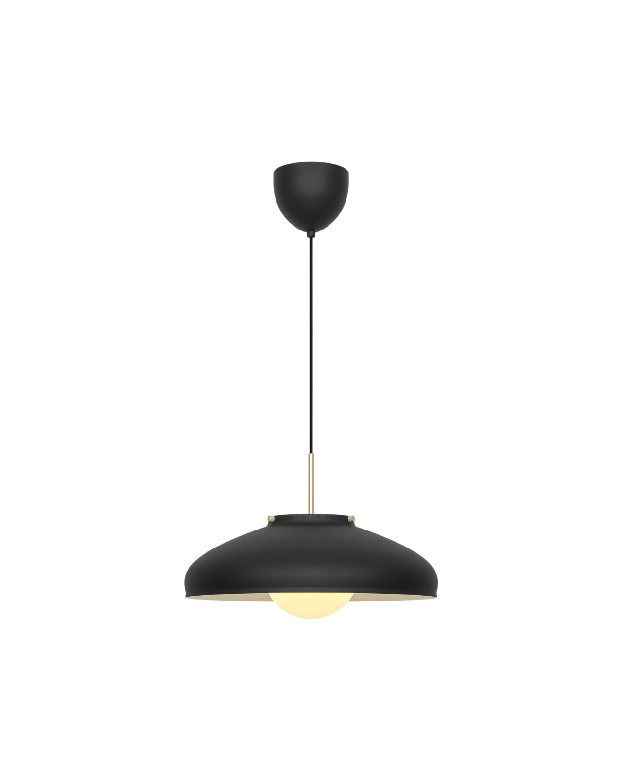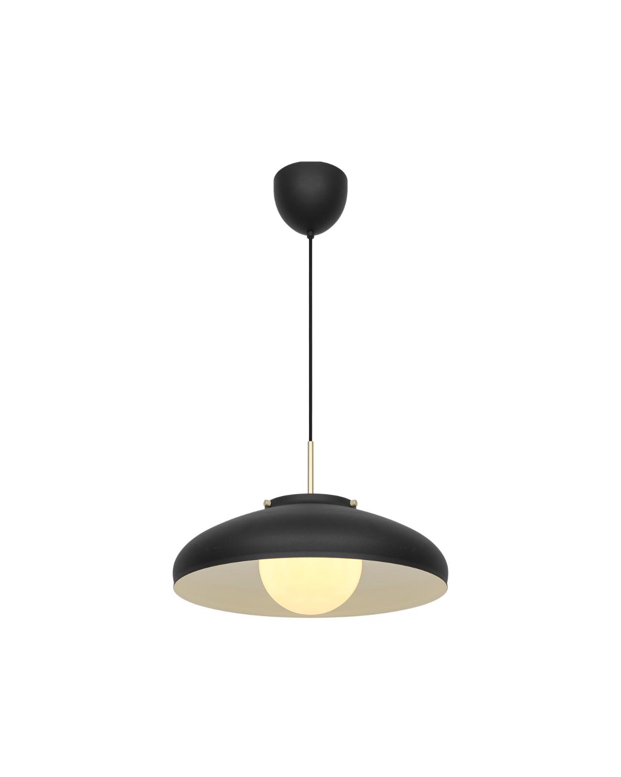 This Scandinavian pendant light features a blend of opal glass and textured metal, complemented by brushed brass accents. Its soft, glare-free illumination makes it ideal for creating a warm and inviting atmosphere in dining areas, kitchens, or living spaces. The adjustable textile cable allows for versatile installation heights, while the sleek black finish adds a touch of modern elegance to any interior.