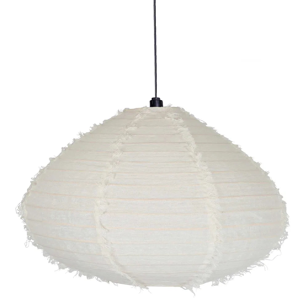 Diffusing light softly through its linen shade this Japanese design will cast a warm, inviting light into any room. Made from Italian linen featuring hand-frayed edges this pendant shade is available in three sizes in either Marshmellow White or Natural. Create a contemporary minimalist lighting feature any interior space by installing the Japanese Linen Pendant Shade singularly or as a cluster of sizes.
