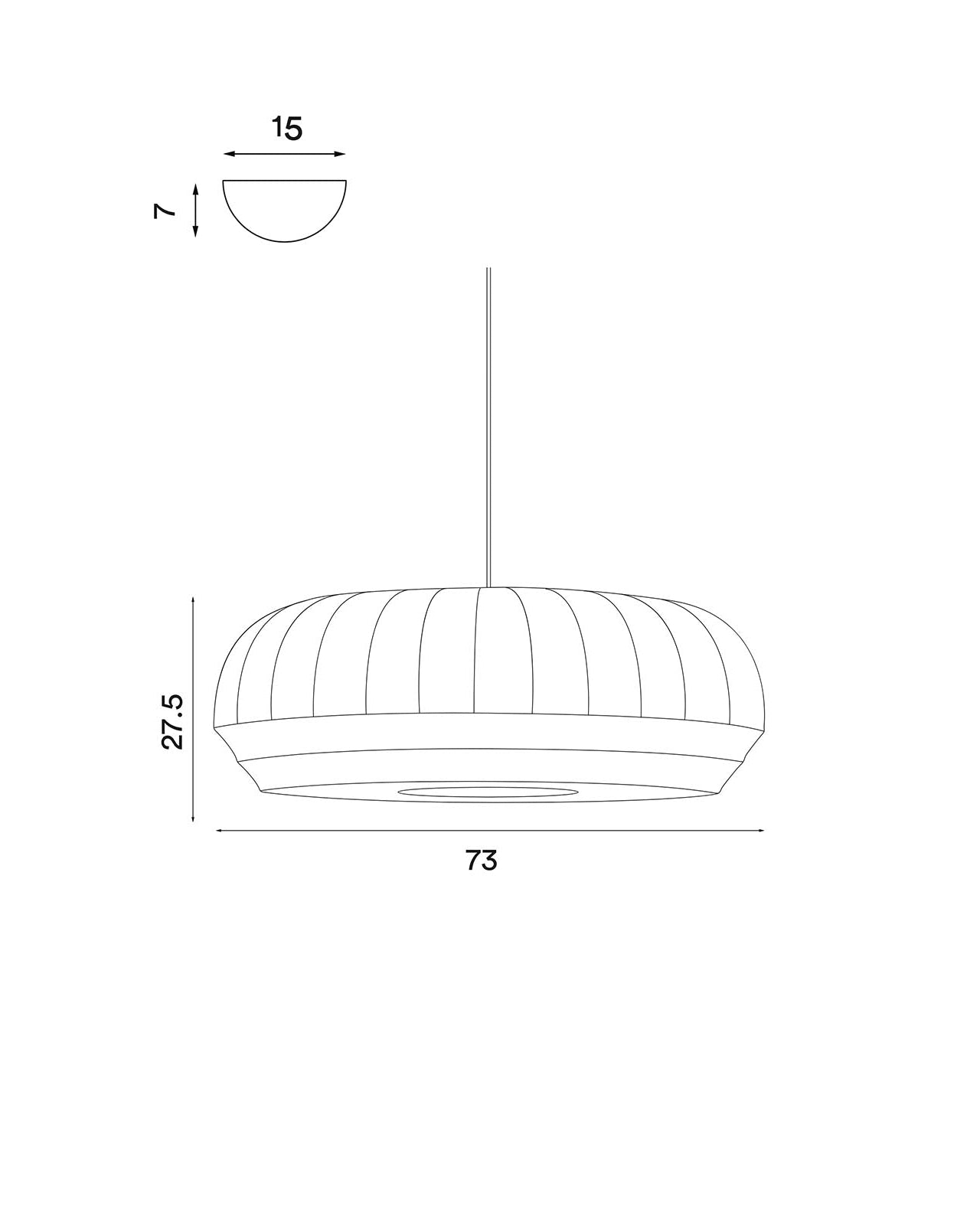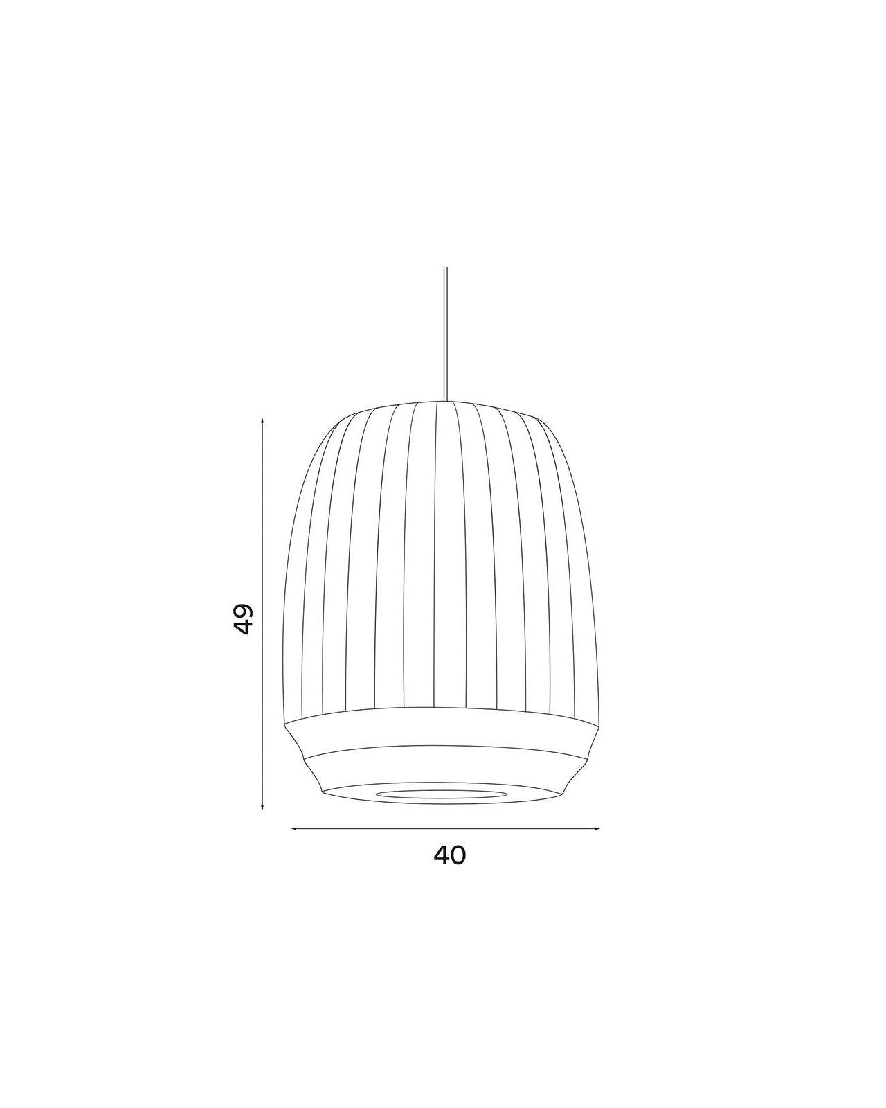 Line drawing of a pendant light with dimensions labeled
