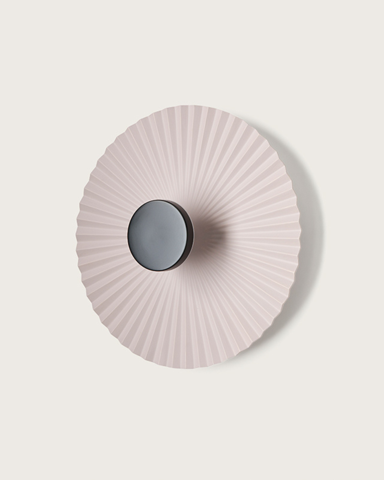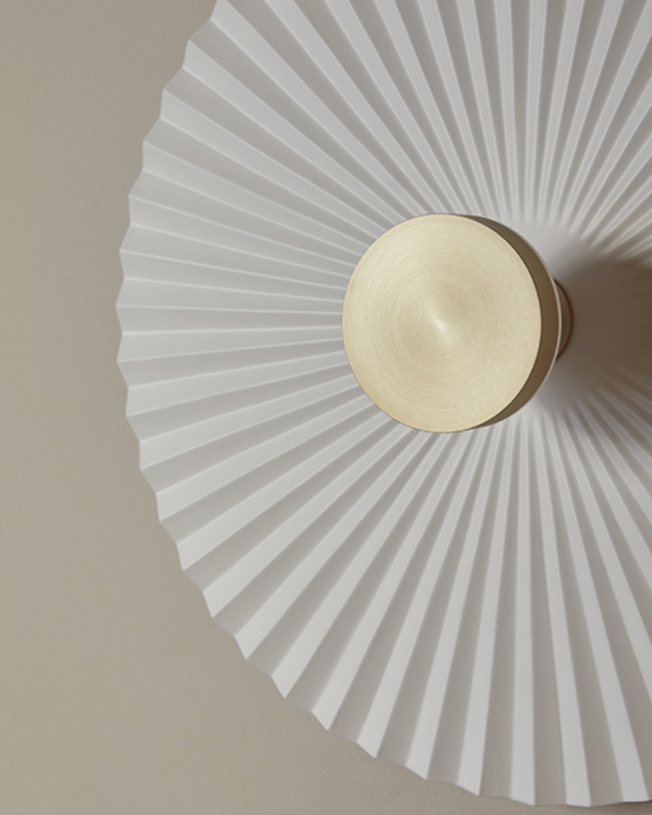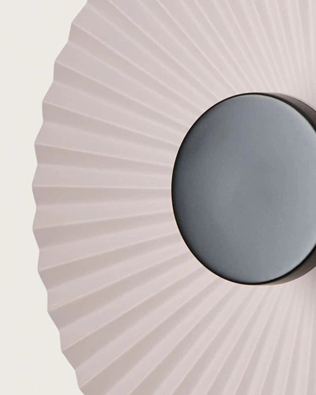 Made from resin and steel this wall light showcases a minimal yet playful design with its stunning pleated details. Featured with an integrated 3000K LED this wall light provides warm indirect light suited for adding an atmospheric glow to bedrooms, hallways or living spaces.