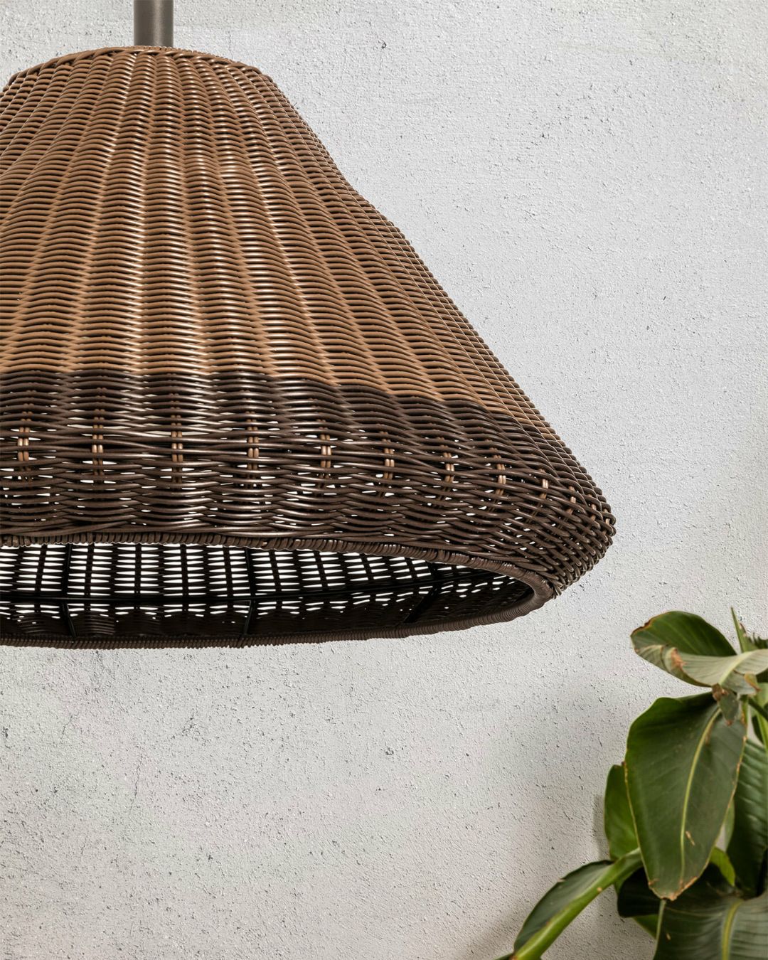 Made from wicker materials, this organic pendant has a rounded shade form. The Wicker Cone Pendant Light is constructed using traditional methods, weaving together wicker fibres to ensure the quality of the fitting is durable and longlisting. This pendant will suit your organic, modern or traditional spaces, and can be used as a suspended fitting in your Living Room, Dining Room or Bedroom. Made in Europe.