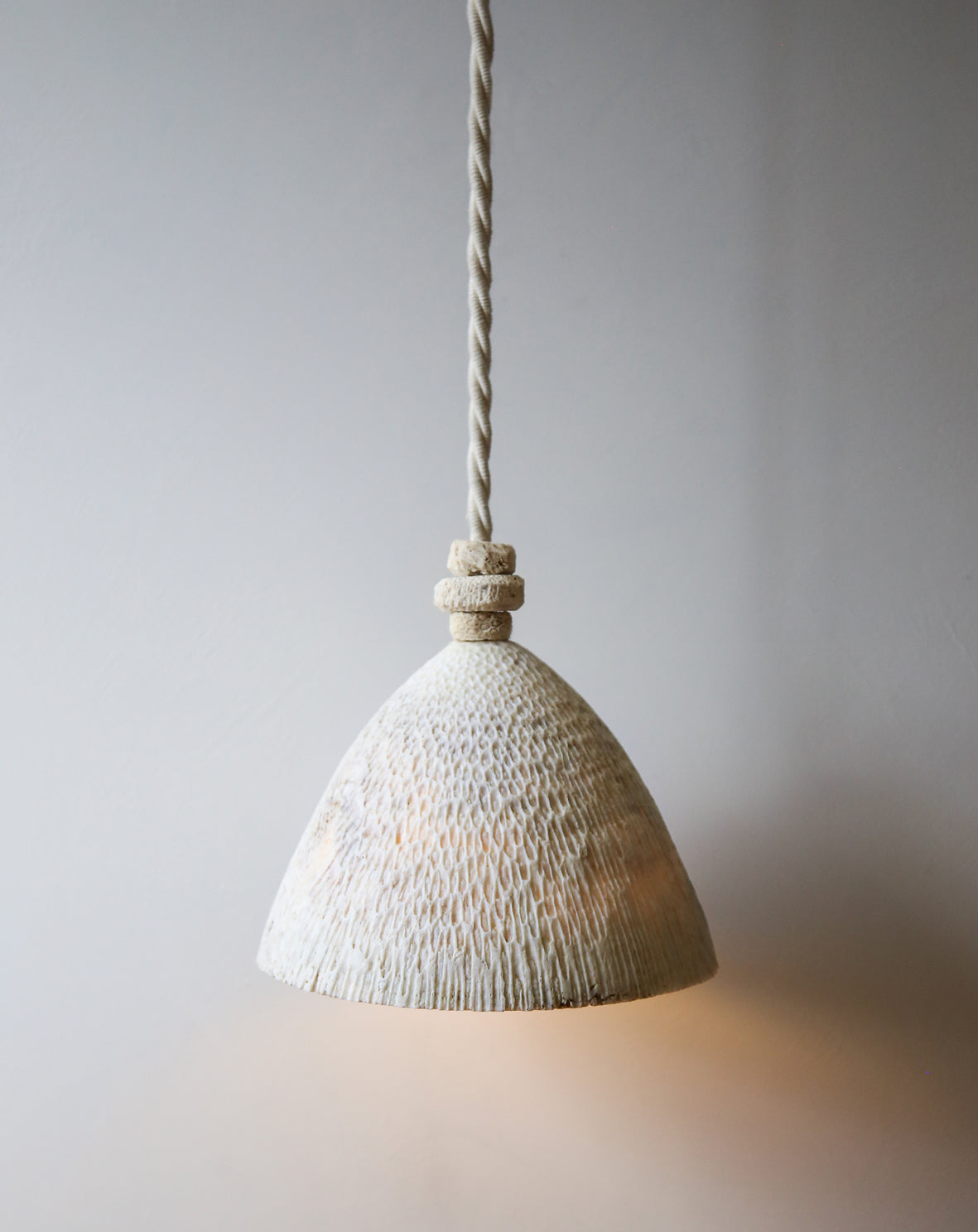 Discover the charm of Marovo Island Traders' Organic Cone Hanging Pendant collection, a homage to nature's serene beauty. Made from Fossil Coral, a unique natural stone formed over countless years, these pendant lights bring a touch of rustic elegance to any space. Marovo sources only the finest Fossil Coral to ensure nature's craftsmanship shines through with every piece. Each pendant light showcases variations of the stone's authentic character for a truly organic addition. Beyond its beauty, Fossil Coral is a reminder of the planet's fascinating geological history, once a part of ancient coral reefs, now fossilised. The collection speaks to the authenticity of coastal living, illuminating your surroundings with a warm inviting glow.