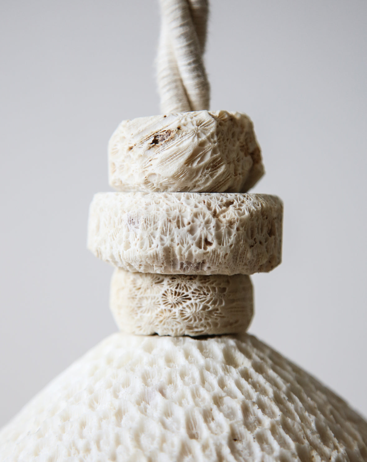 Fossil Coral Cone Hanging Pendant - Small / 1 Bead / Jute