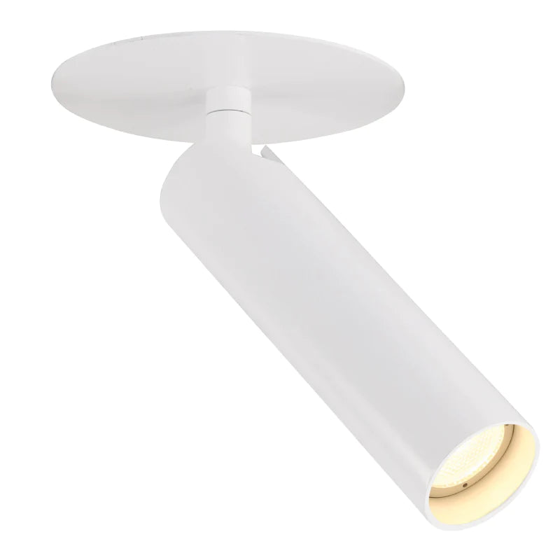 This minimalist spot light features a flat canopy and a long sleek cylindrical shade made from aluminium, copper and iron. This white fixture will enhance any modern, contemporary or traditional interior space, from kitchens to living rooms. Thanks to its adjustable head, the warm and pleasant light can be directed where it is needed most and the product is leading and trailing edge dimmable.