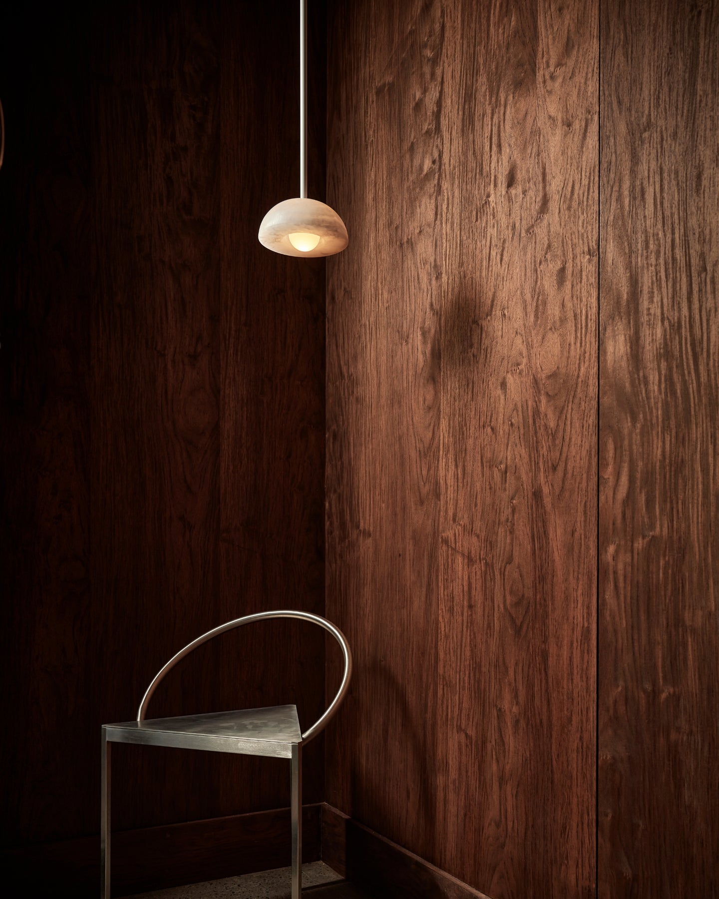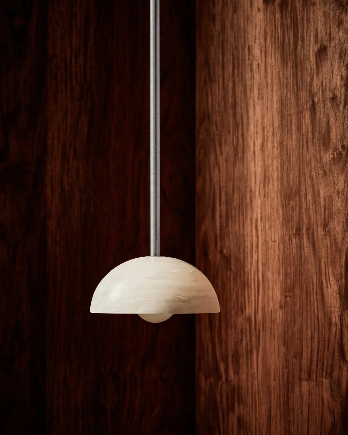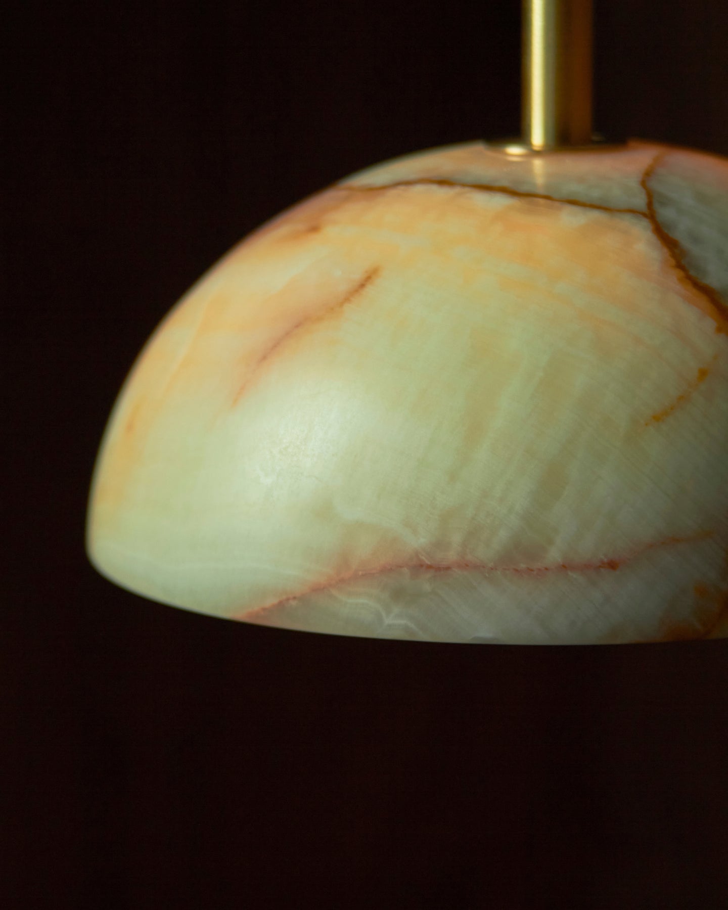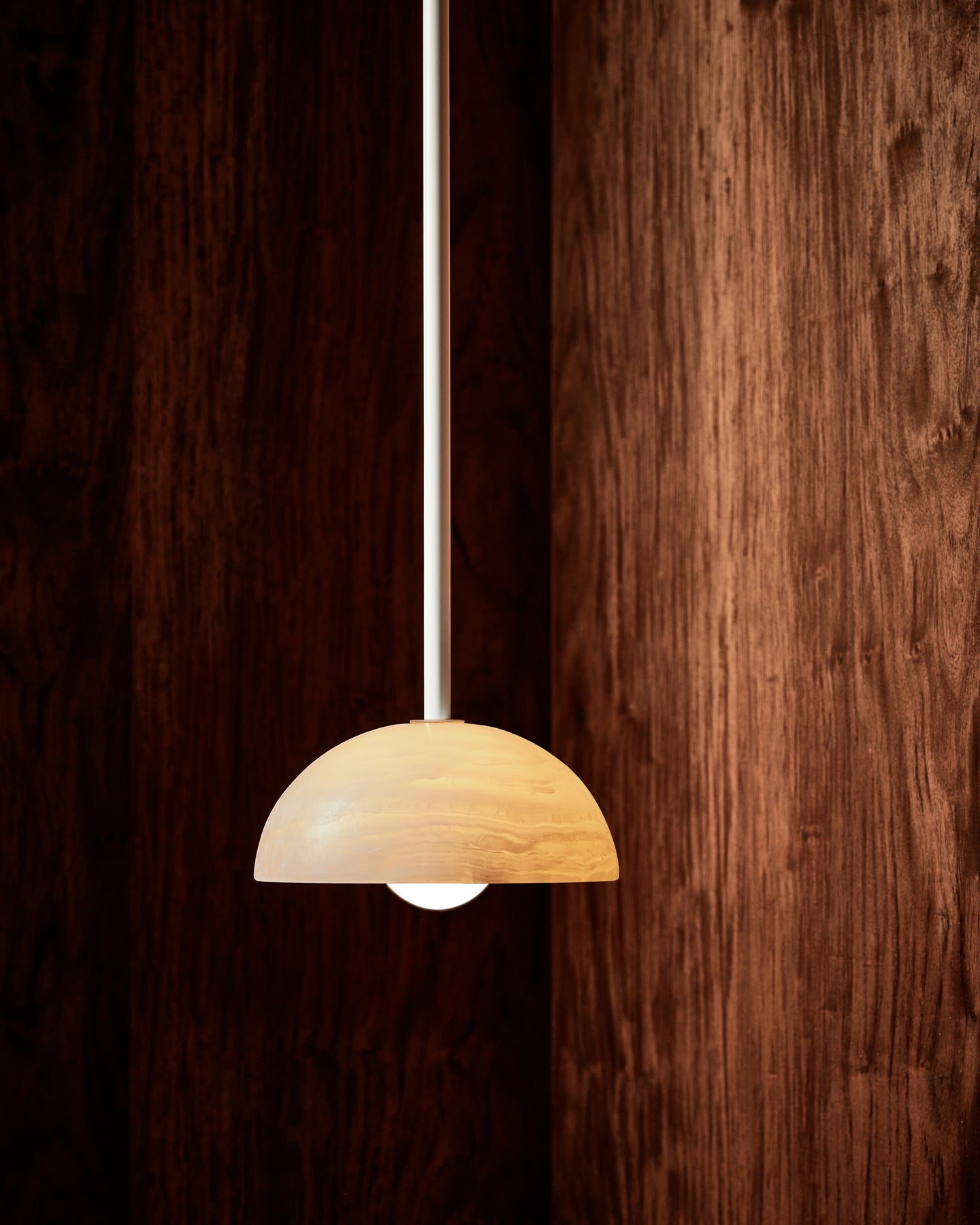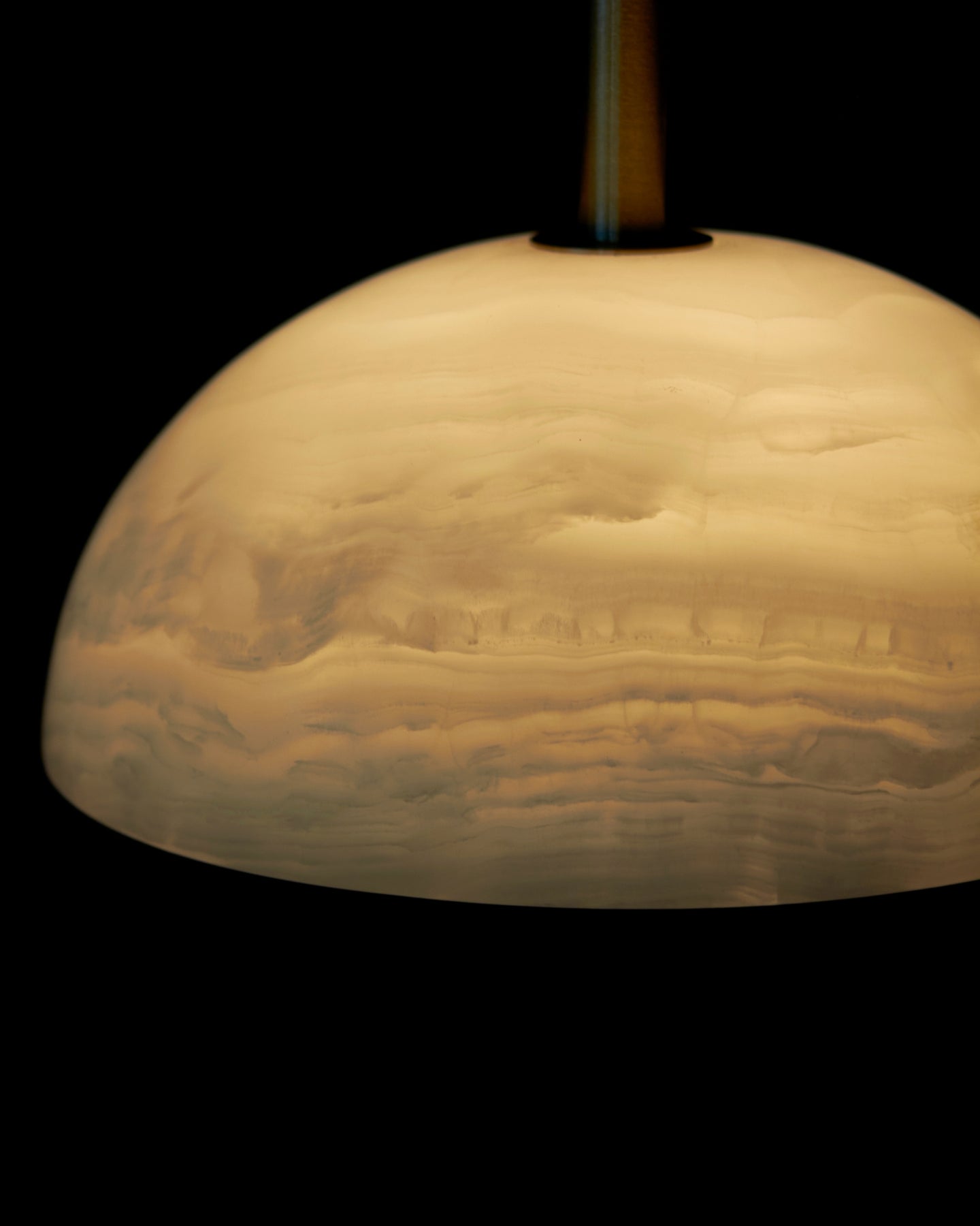 Combining the style of a chandelier with contemporary and classic elements, this IP44 rated pendant is designed and hand-assembled in Byron Bay and will make a statement over a dining table, in a bedroom or in a reading nook. Suspended by a solid rod available in white satin, brushed black or brass finish, the elegant dome shade is made from white or jade translucent stone allowing both indirect and direct illumination in interiors for a more welcoming and cosy atmosphere.