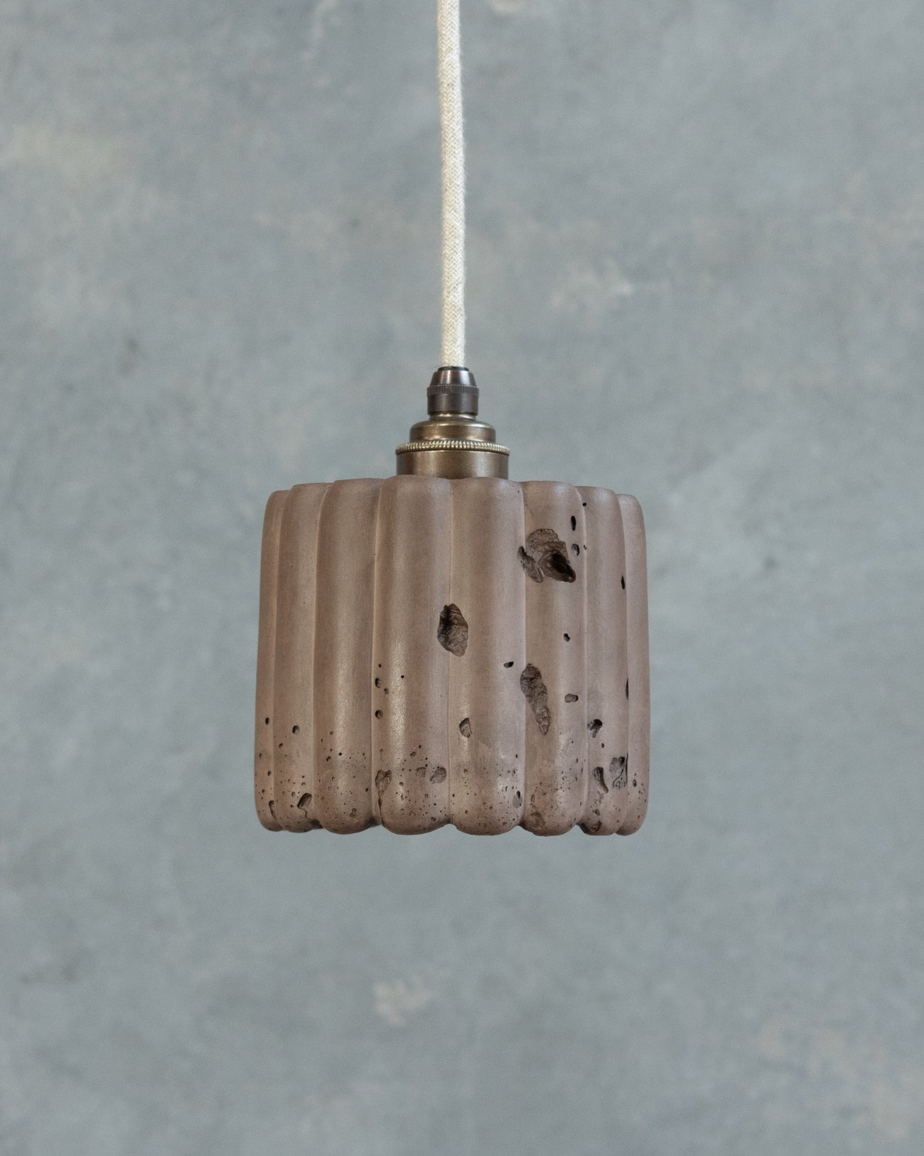 The Small Fluted Concrete Pendant Light features a cylindrical shade with a fluted texture. Hand-poured locally in Ballina, these pendants utilise concrete and glass fibres to create a lightweight, yet durable fitting. The juxtaposition of the raw materials with the elegant fluted shape adds interest to this pendant and makes it suitable for both Organic and Contemporary interiors. Available in a variety of earthy tones made possible using Iron Oxides to colour the concrete.