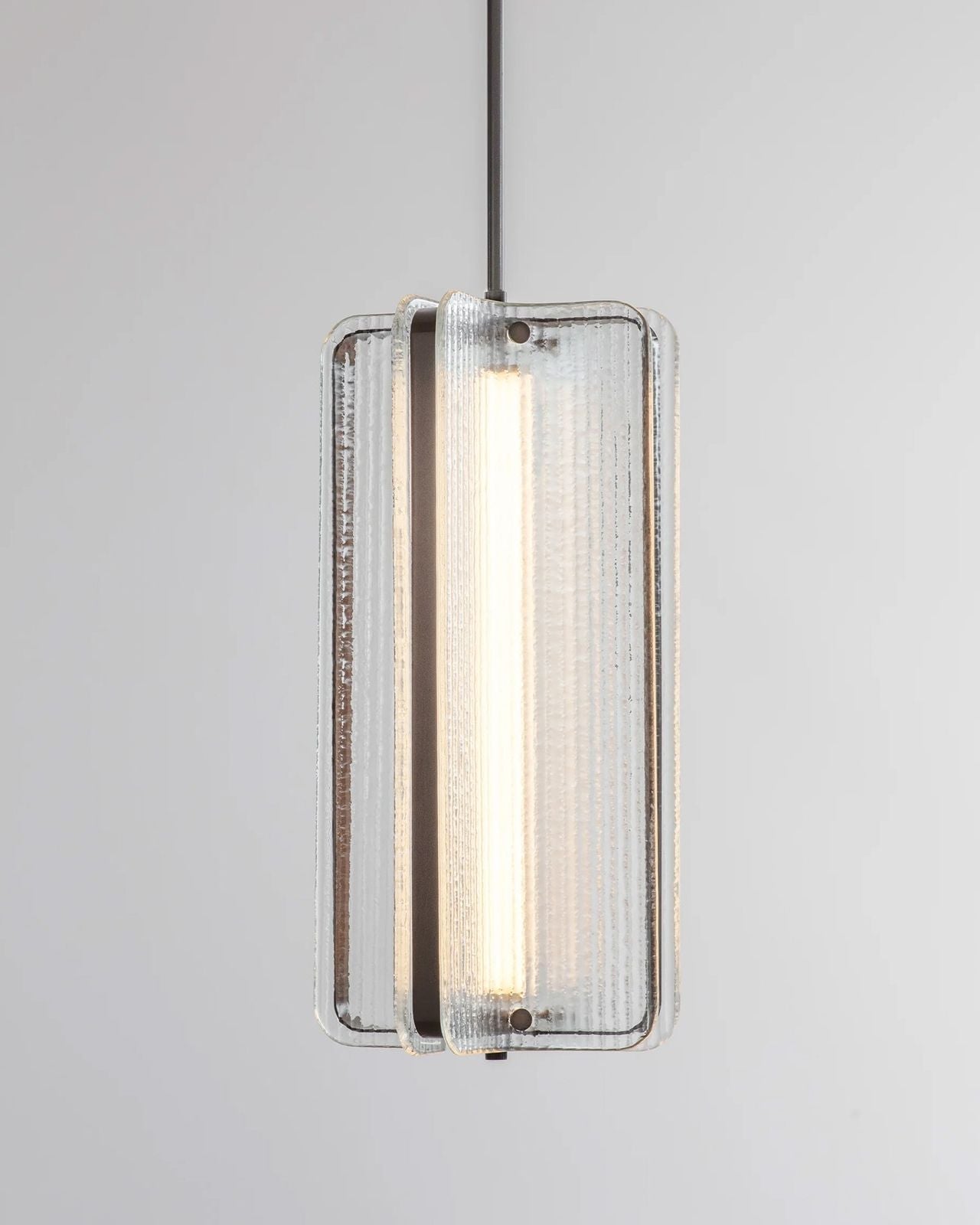 Textured Reeded Glass Column Pendant - Antique Brass / Drop Rod