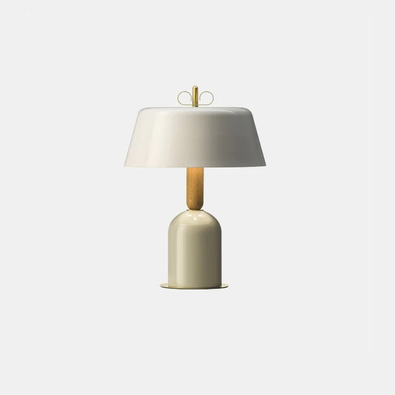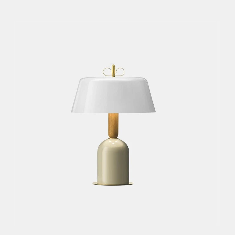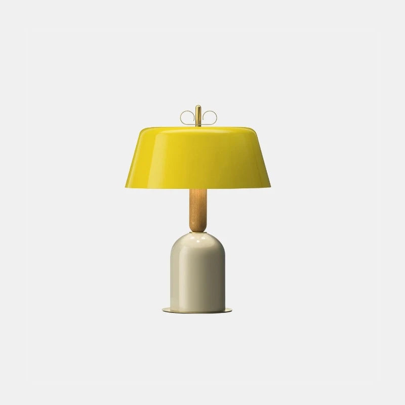 Add an eclectic touch to any interior with this Italian made table lamp. Crafted from a combination of high-quality materials and geometric shapes this lamp will become a design centrepiece within any interior. With its natural brass closing curl and oak wood accents, this lamp has been designed to be reminiscent of a piece of artistic jewerlly. Available in Blue, Yellow, White or Grey finishes.