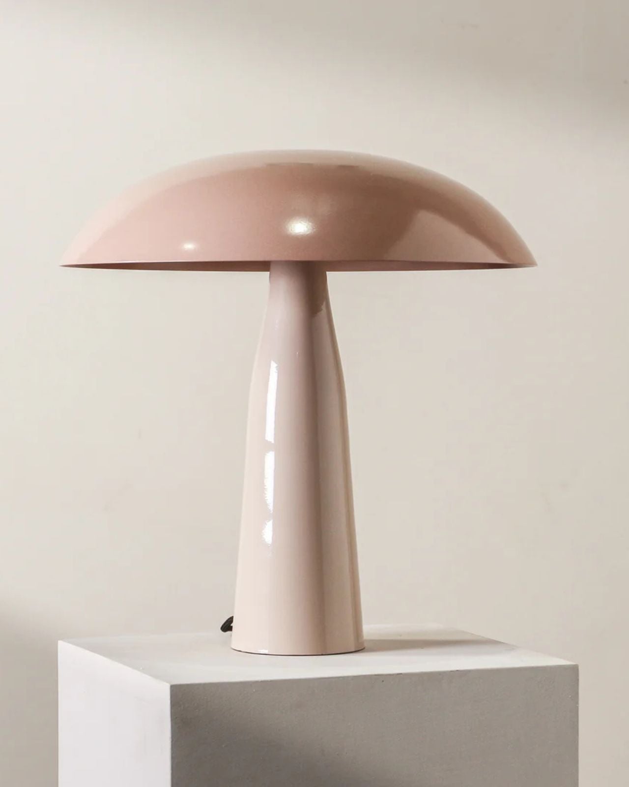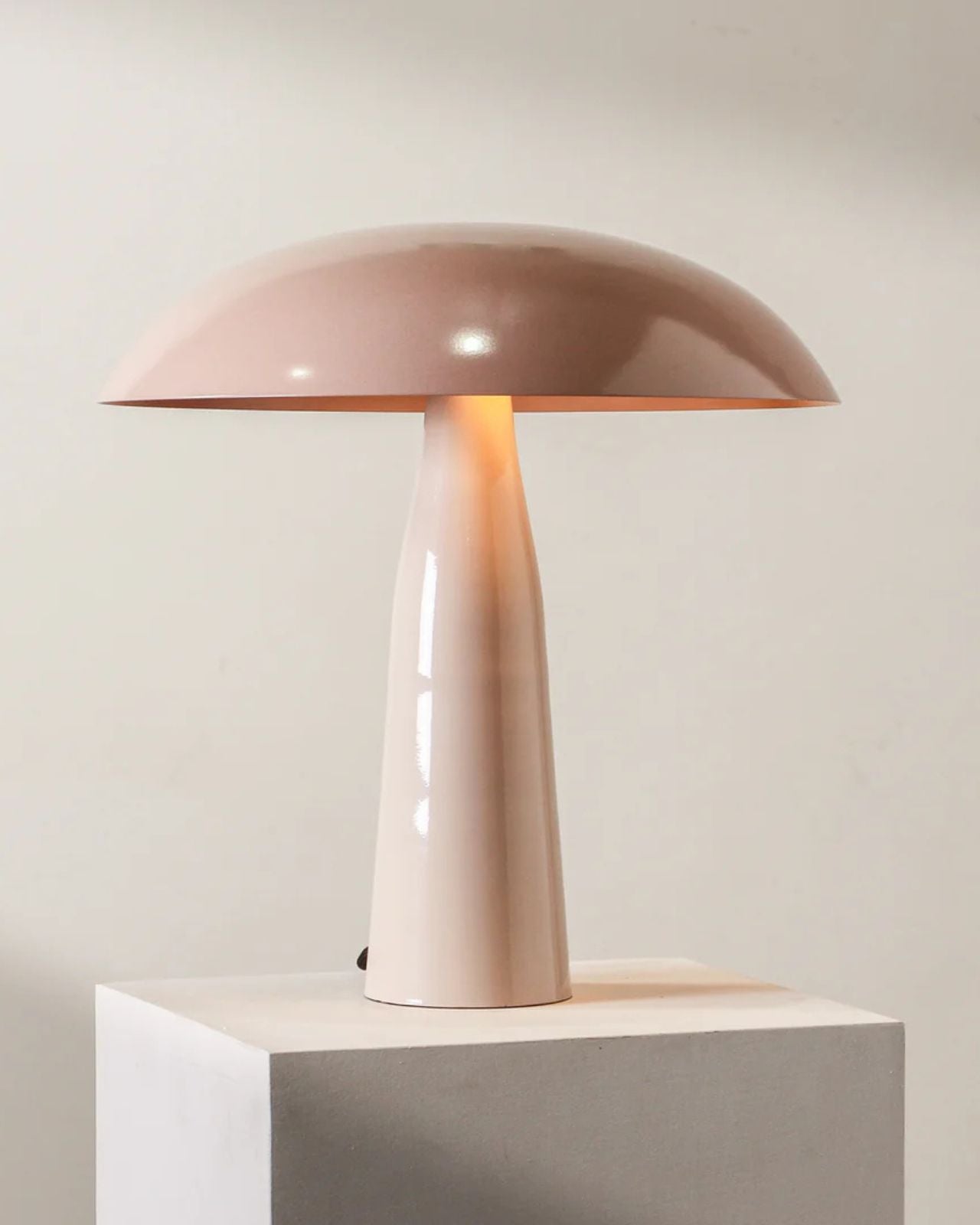 The Gloss & Matte Modern Table Lamp is finished in a gloss‑accented metal with a gently muted matte top. Its silhouette is a contemporary interpretation of classic mushroom forms, ideal for smaller consoles, bedside tables or shelving. Available in Mauve or Rose Dust tones, the muted shades lend softness and depth to curated interiors.