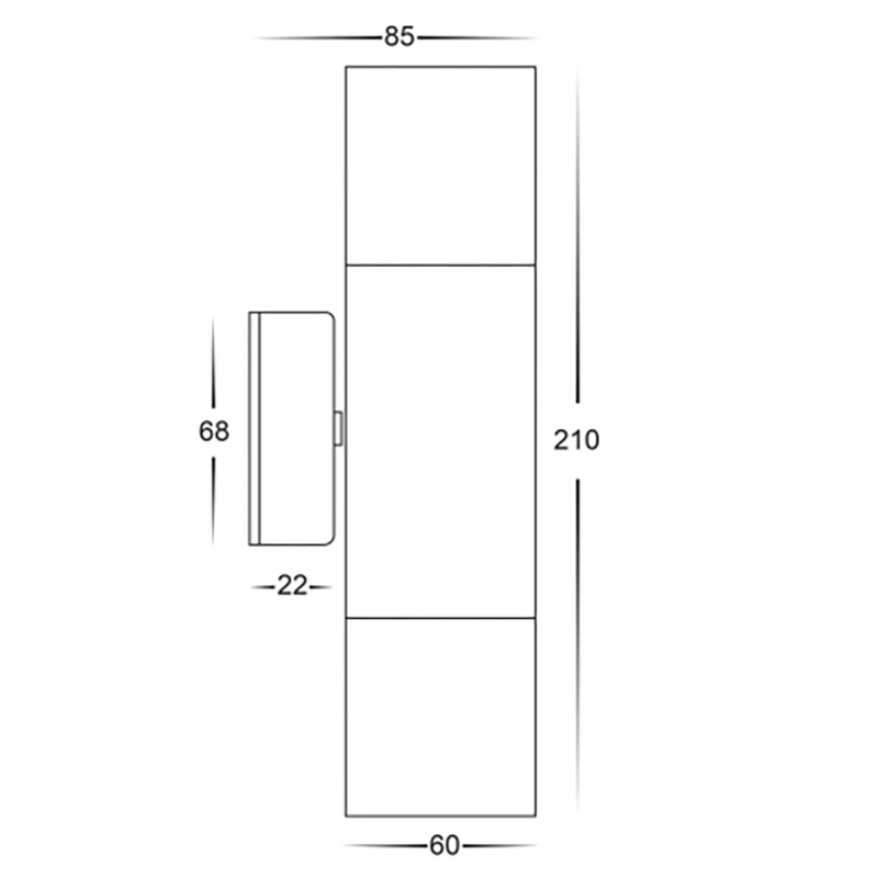 Vertical profile cylindrical exterior pillar or wall light. This up & down pillar light is one of the best for durability, with an IP rating of 65, this light is perfect for withstanding harsher climates. The sleek and elegant profile allows it to seamlessly blend into a range of exterior environments.