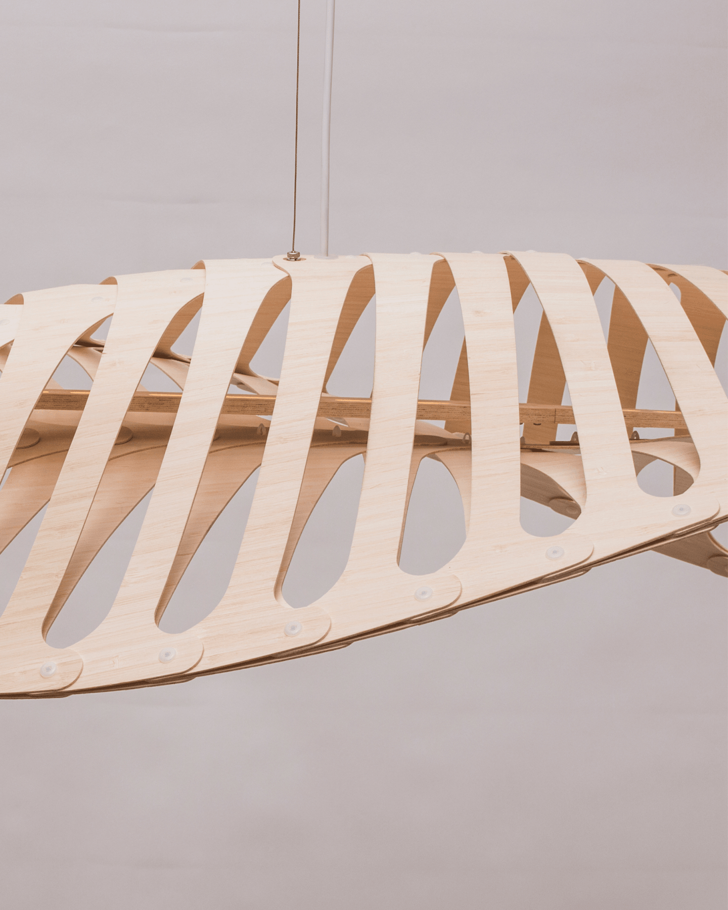 MaterialsPlywood | Nylon clips | Aluminium | Polycarbonate diffuser | Stainless Steel cables