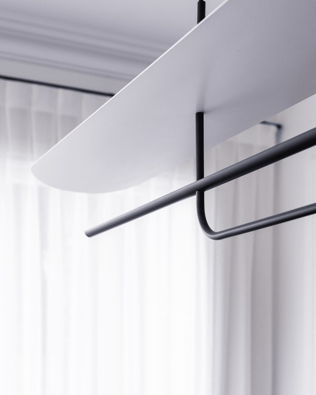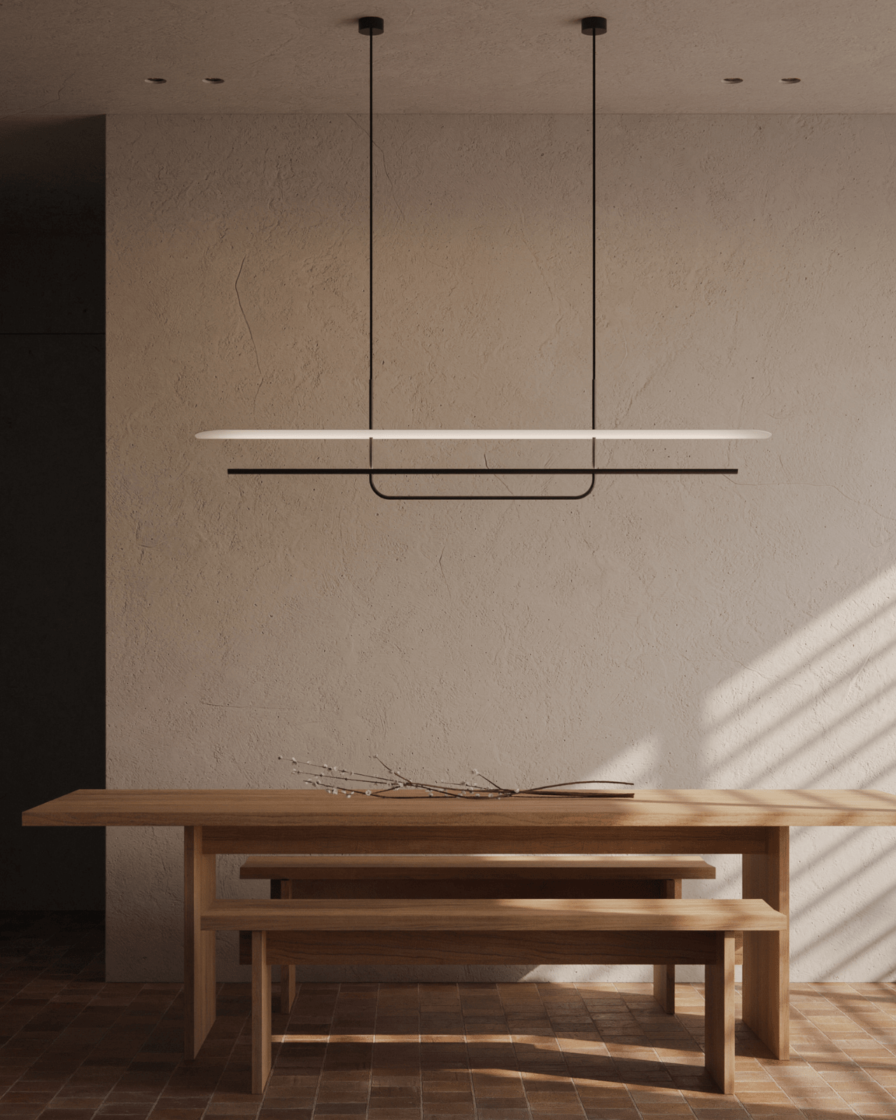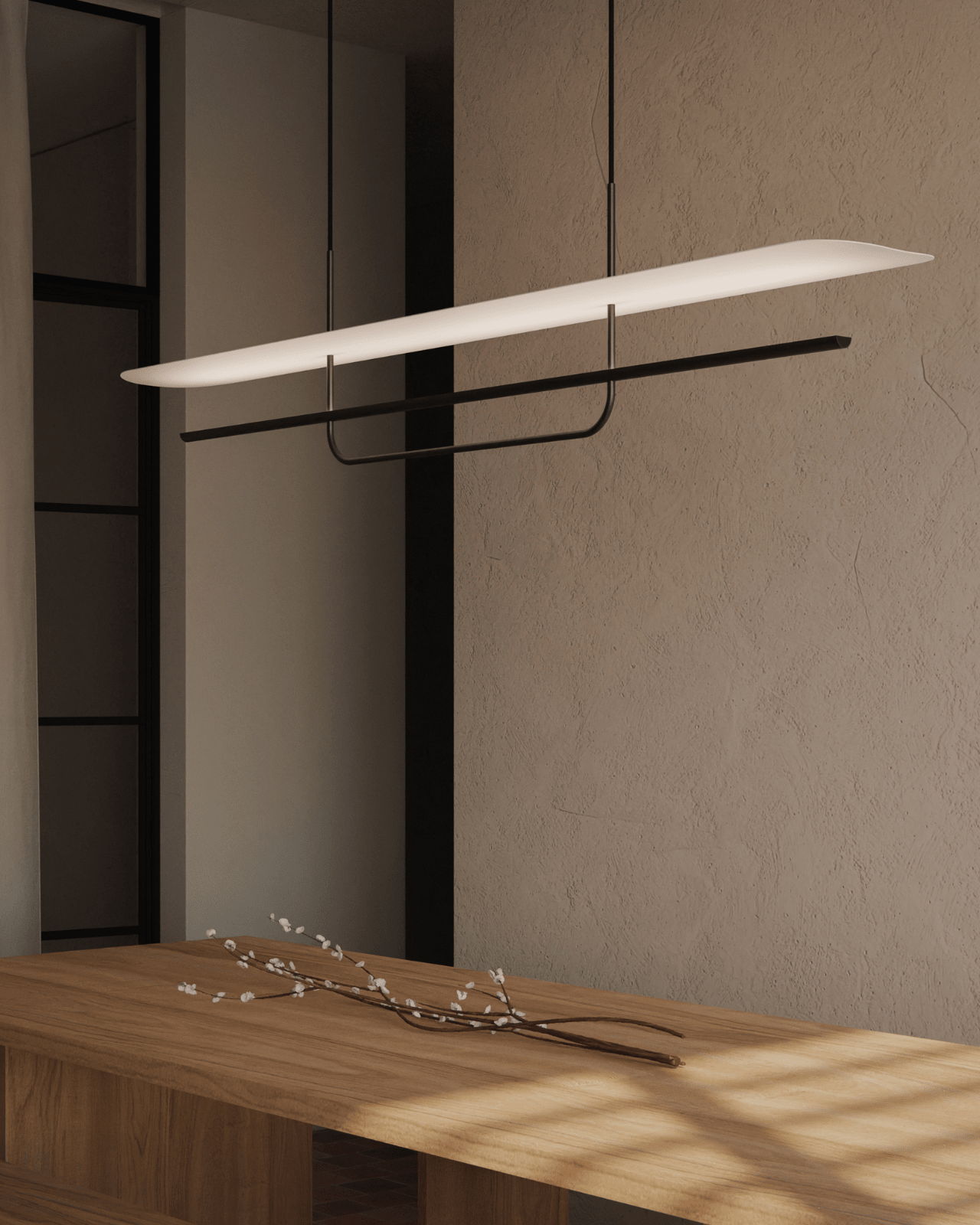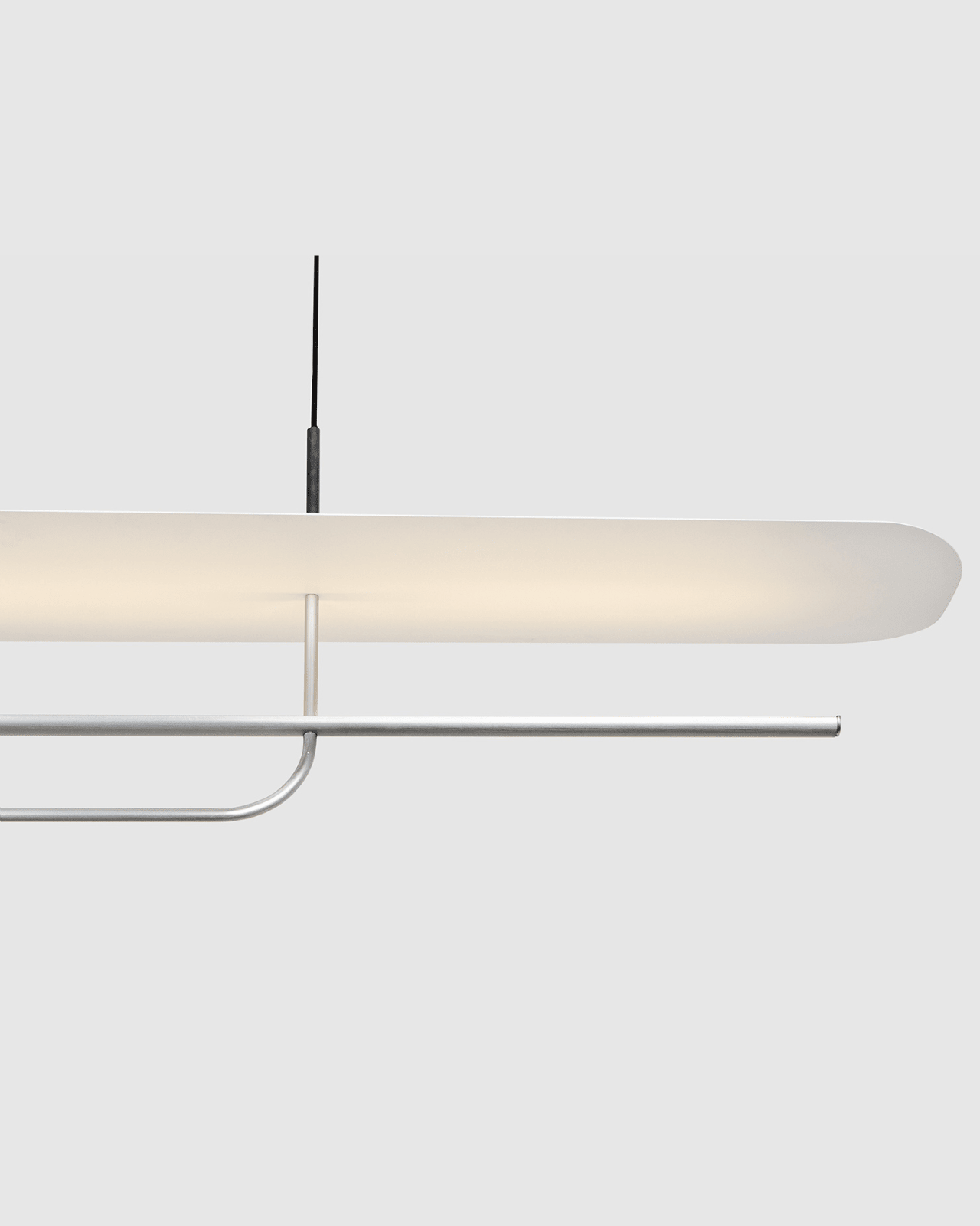 Elevate any space with the Reflector Linear Pendant, the epitome of contemporary design and functionality. This striking focal piece features a floating metal reflector in a white finish, fitted above an upward-facing linear light. This sophisticated design allows light from the pendant to reflect off of the white aluminium sheet above it, creating a soft indirect glow that enhances the atmosphere of any room. Ideal for installation above dining tables or in large open spaces.
