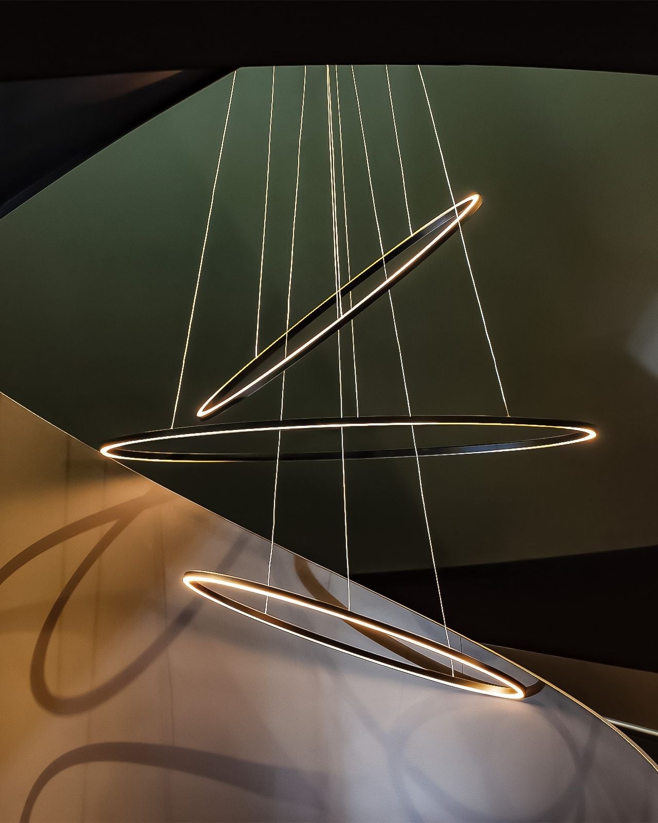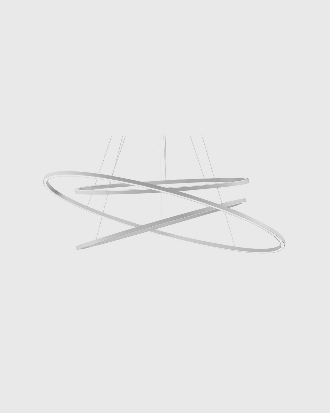 This beautiful pendant is crafted from extruded aluminium and is the perfect feature for modern space. Three, spherical forms of different sizes interact to create a unique and highly customisable light installation. Available in Gold or White.