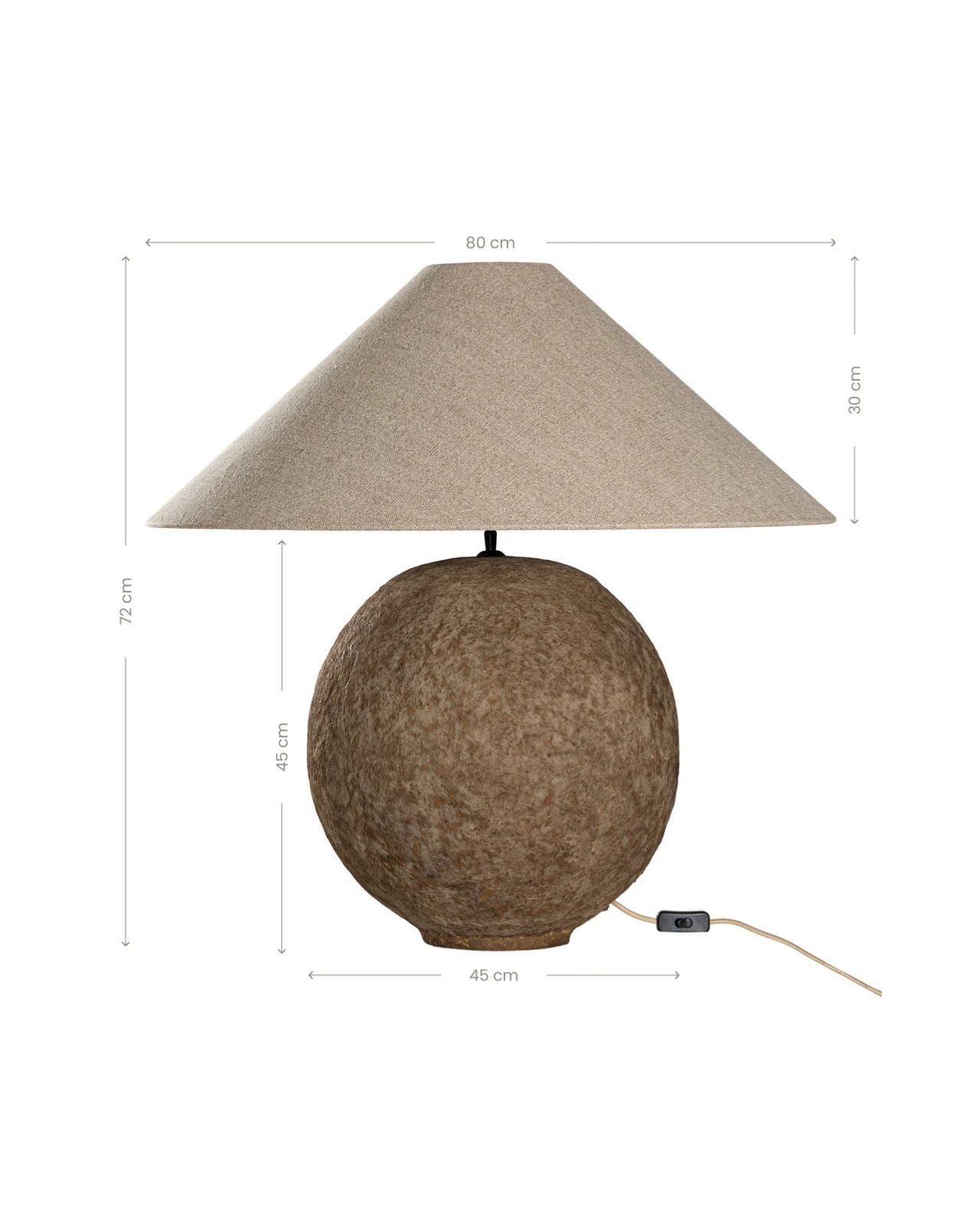 Enhance any room with the Organic Spherical Table Lamp, a striking fusion of design and function. The base, crafted from eco-friendly paper mache, features a spherical form that looks as if it's balancing on it's own. Its handcrafted texture introduces a unique element to modern or classic interiors. Equipped with a ball joint lamp holder, the lamp allows for the shade to be angled to direct light wherever needed. The accompanying linen shade offers a refined, natural texture that diffuses light softly, creating a warm and inviting ambiance.