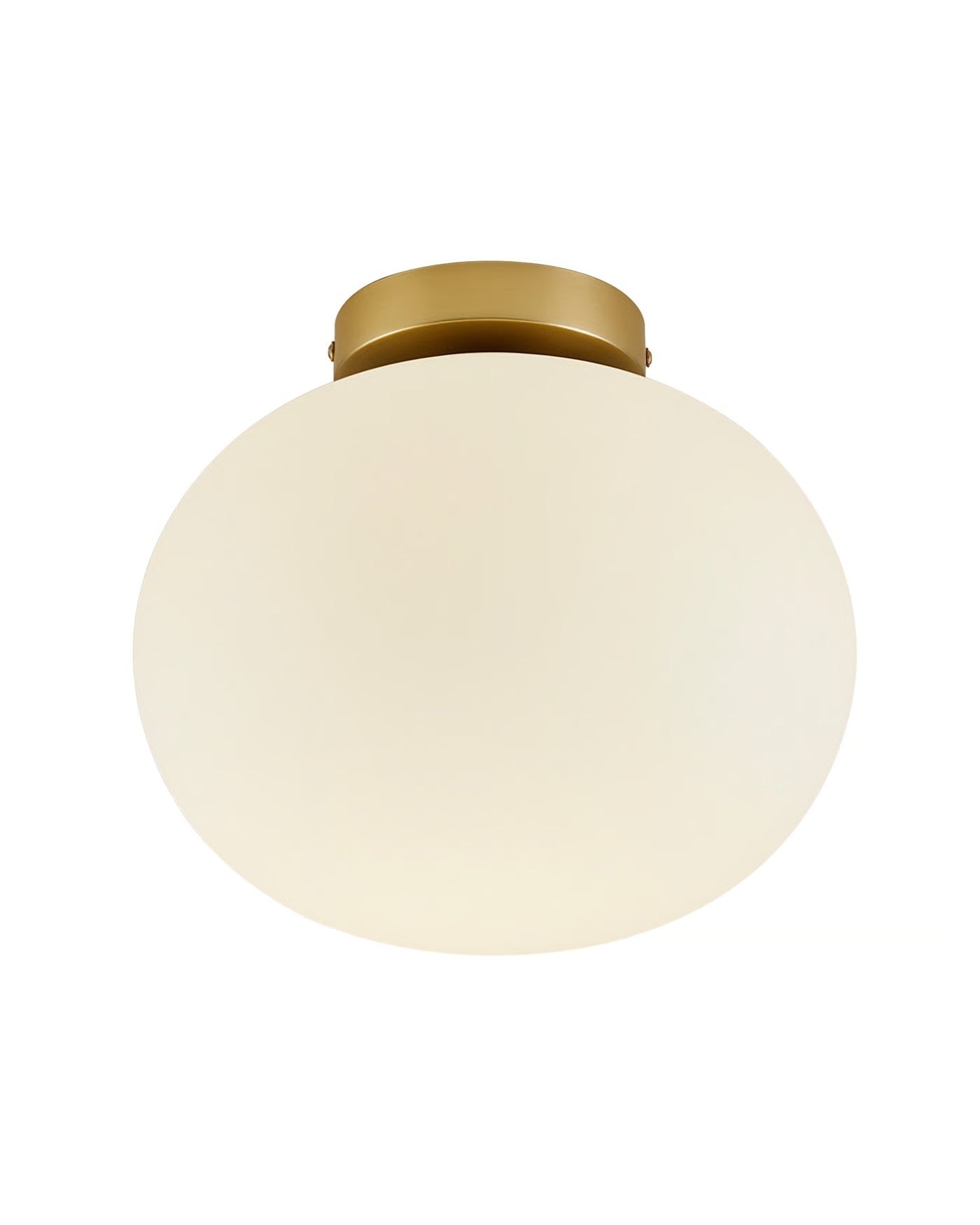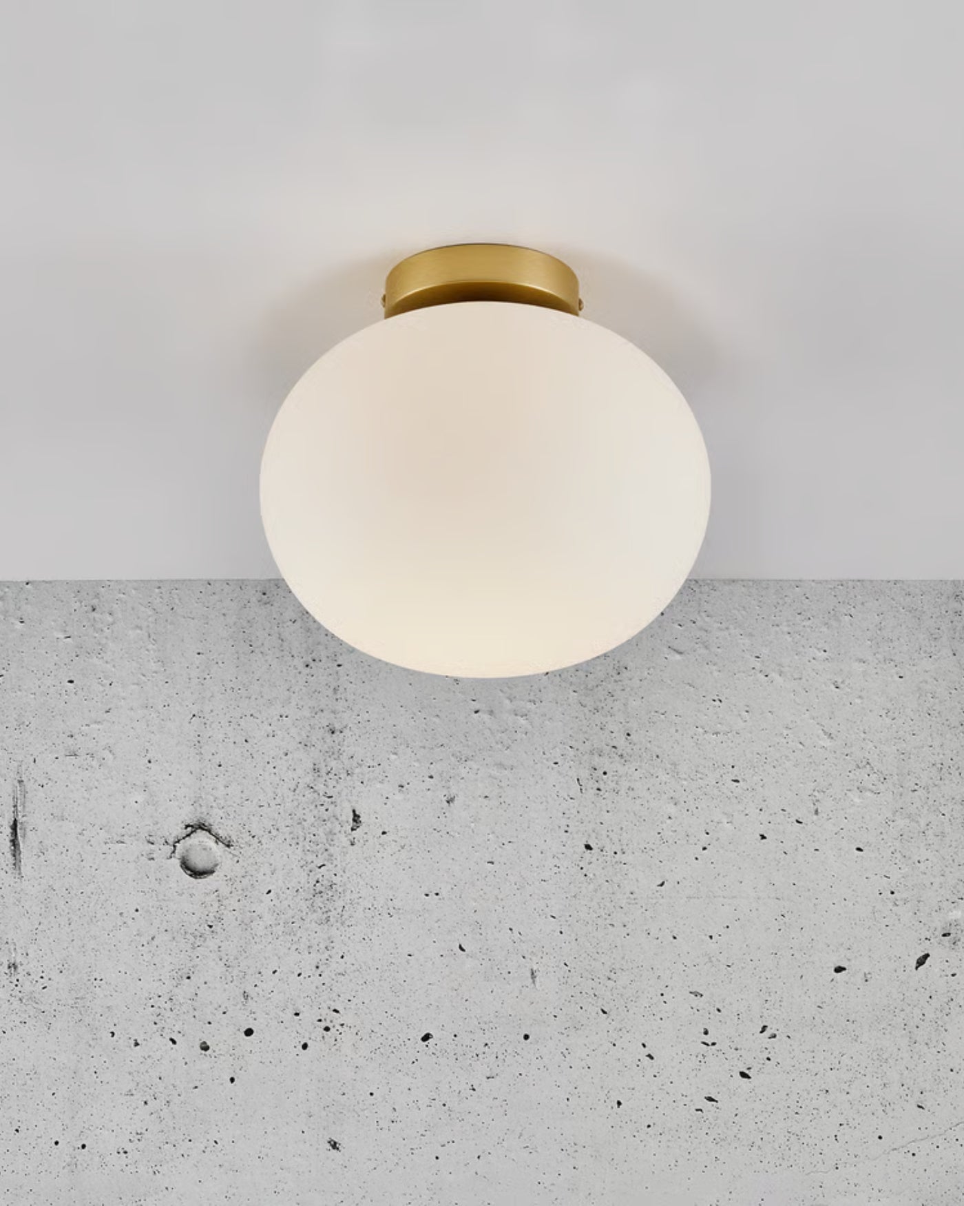 Designed in Denmark the Simple Scandinavian Ceiling Light showcases a beautiful unison of brass and opal glass. A Contemporary fitting that is suited for both ceiling and wall installation emitting soft diffused light through its rounded diffuser.  With its minimalist design and neutral tones, this fitting integrates seamlessly into any interior space. Available in Brass/Opal or Black/Smoked.