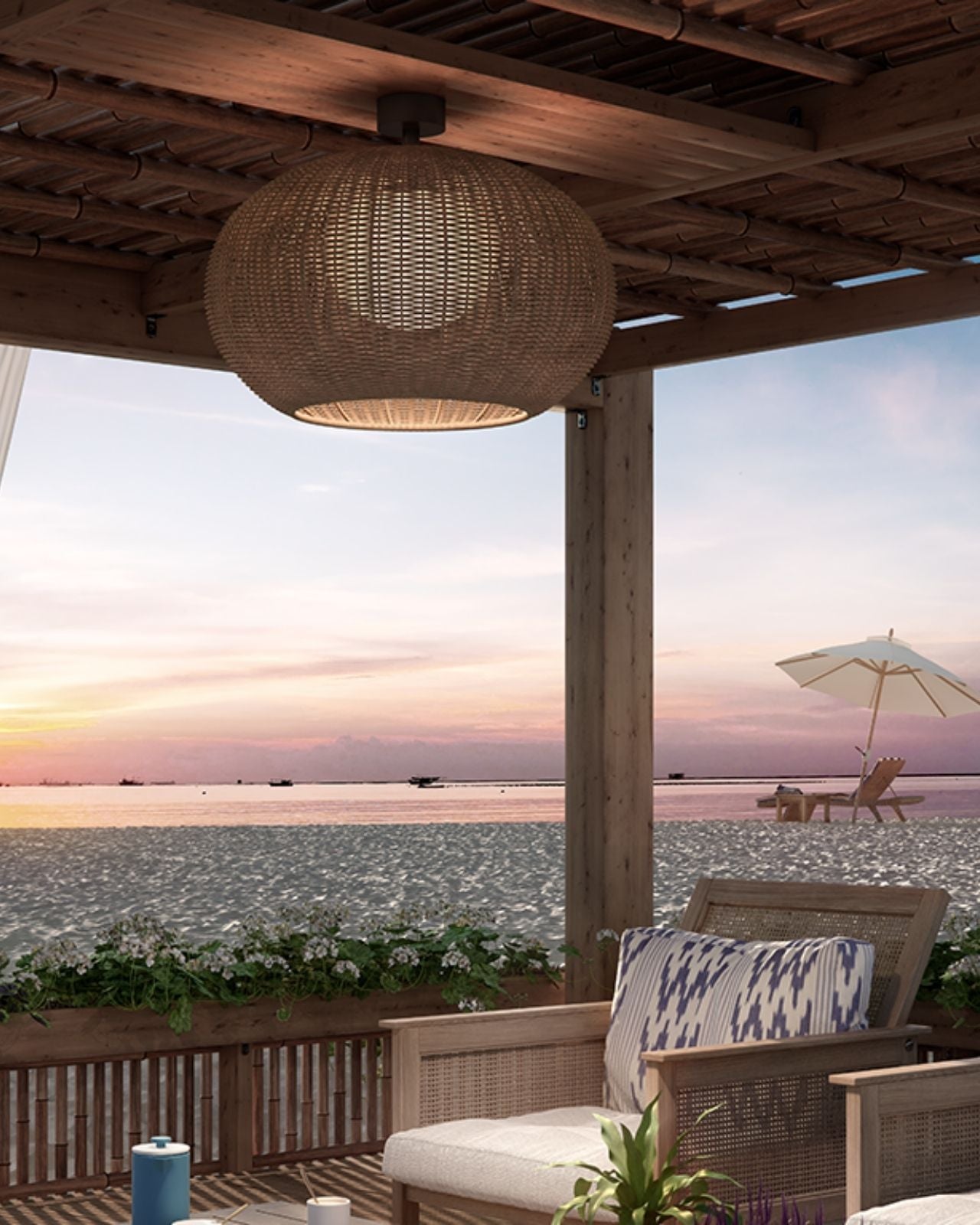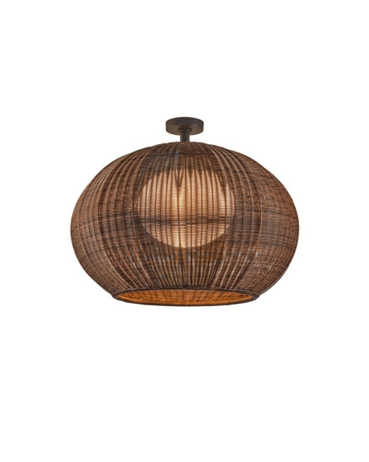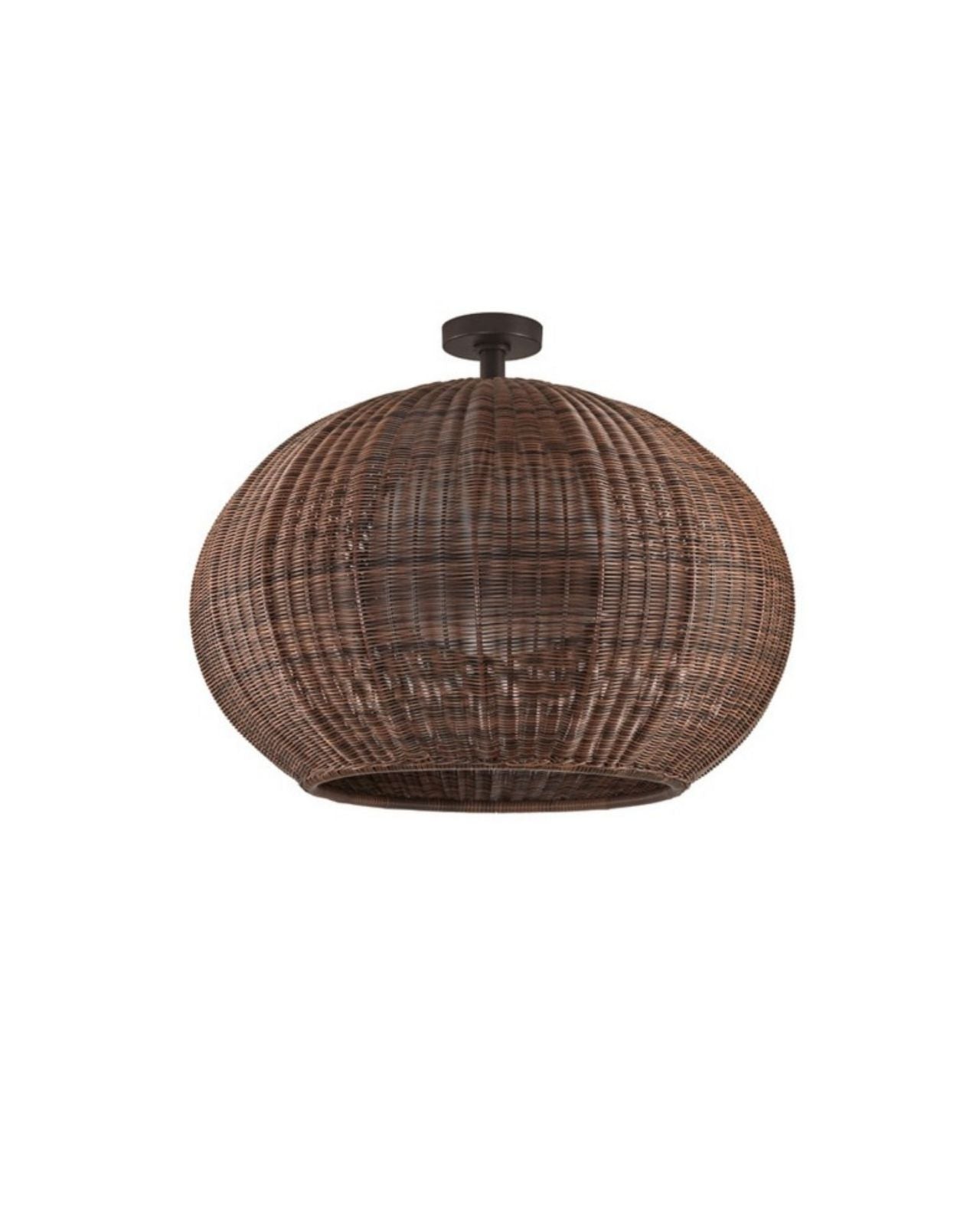 Designed in Spain to illuminate both outdoors and indoor spaces, this ceiling light features a crafted rounded woven shade with a unique vertical trending pattern. Supplied with a frosted inner orb, IP-rated IP65, and supplied with a warm 2700K LED fixed within a polycarbonate diffuser that will both illuminate and elevate interior as well as exterior entertainment spaces.