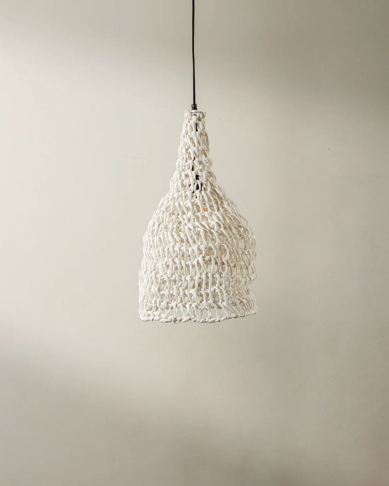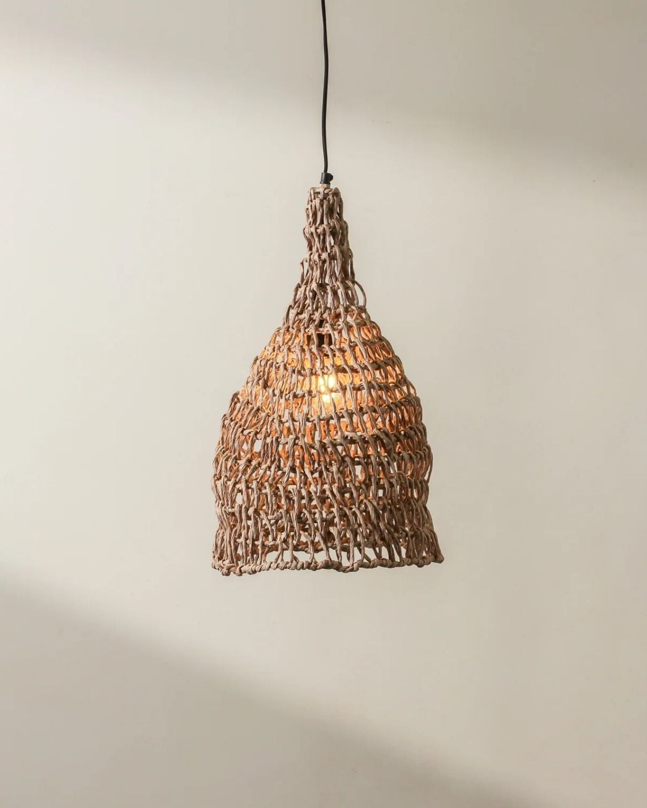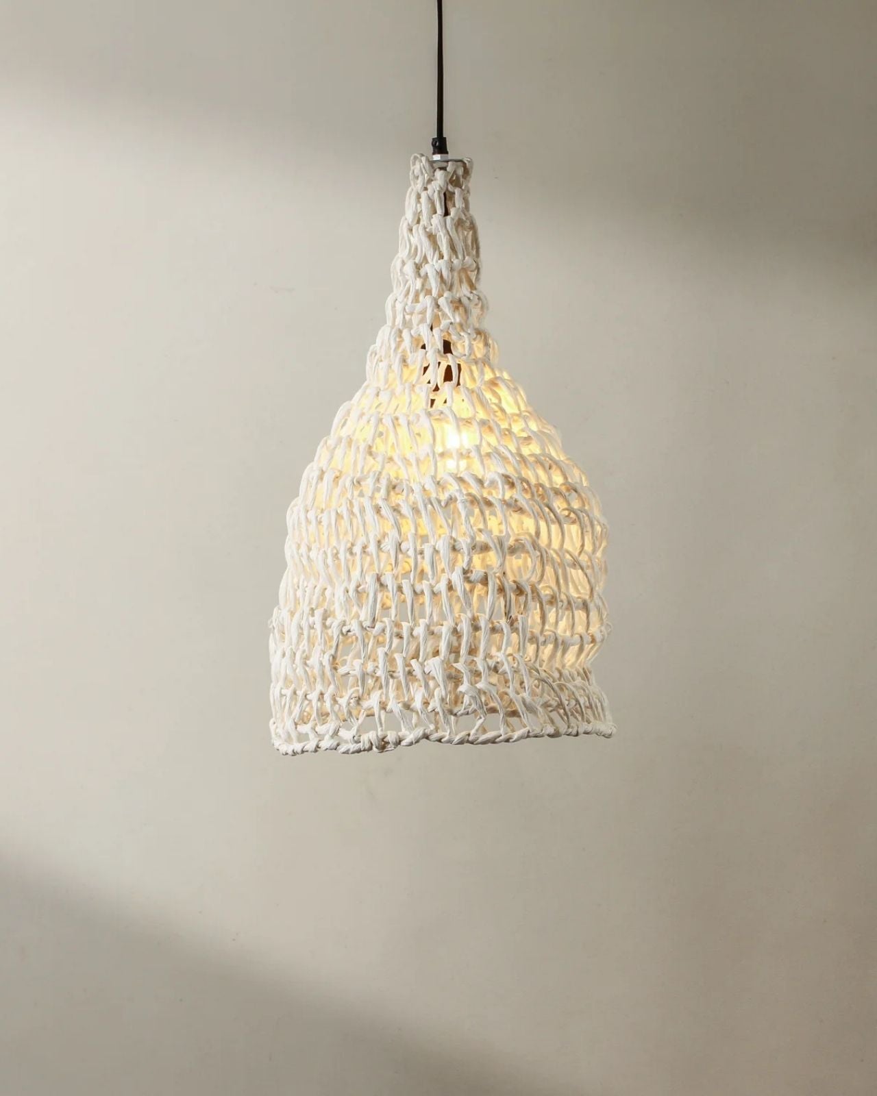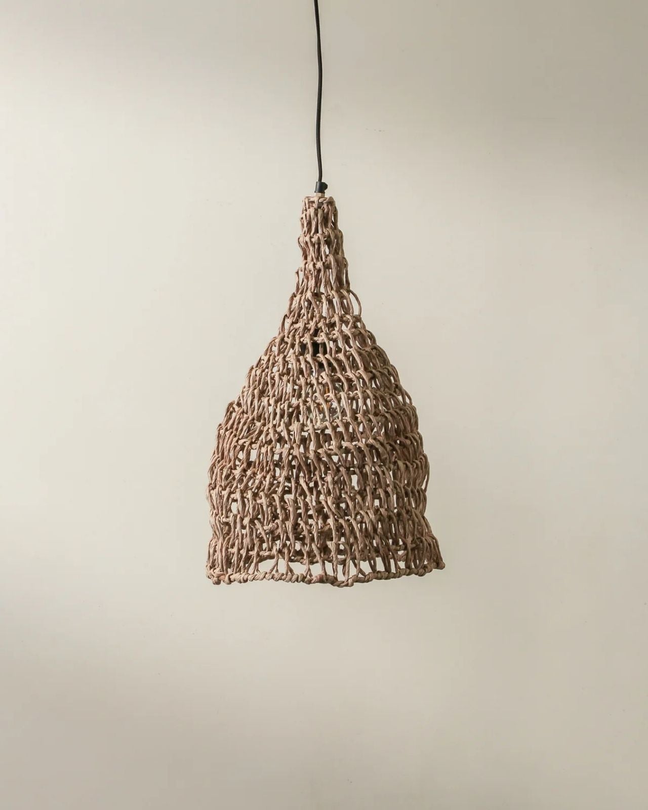 The Petite Handwoven Paper Rope Bell Pendant is a soft, bell-shaped pendant crafted from handwoven paper rope. Its open-weave construction offers lightness and a traditional silhouette, making it ideal for clustered installations above benches, kitchen islands, or bedside tables. The pendant’s refined form and artisanal material elevate contemporary interiors with a subtle sculptural presence.