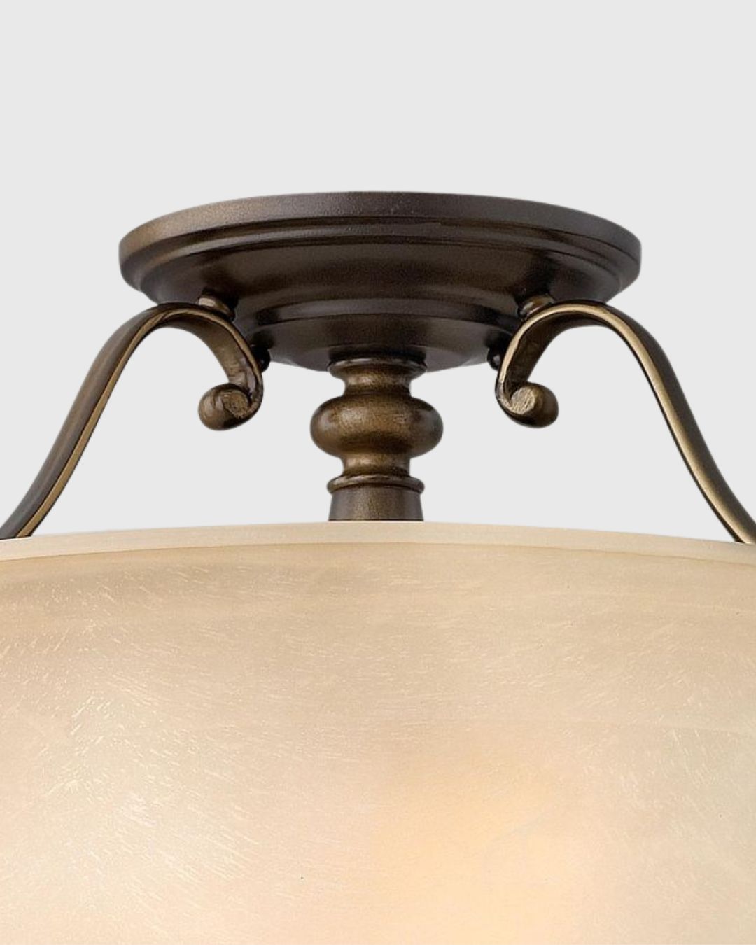 Crafted in the Hampshire countryside, the Traditional Royal Bronze Ceiling Light has a transitional style featuring painted antique candle sleeves and sturdy round detailing in a Royal Bronze finish. The off-white pleated shades and vintage-inspired faux alabaster glass add classic details for an authentic look. Ideal for farm house and mid-century modern-styled homes.